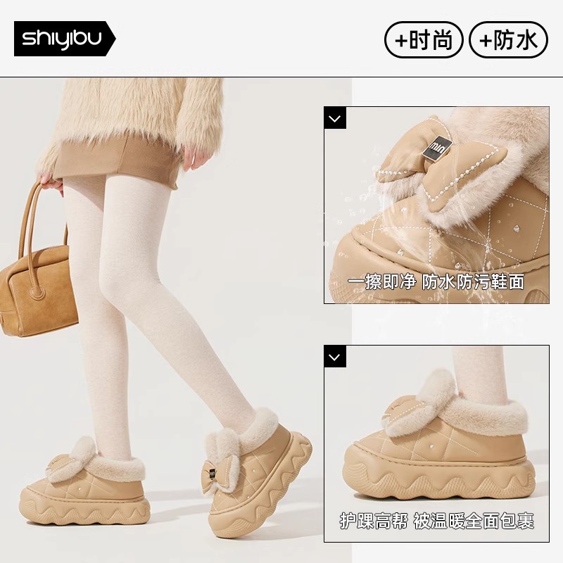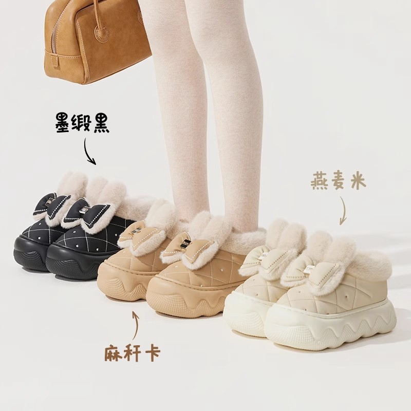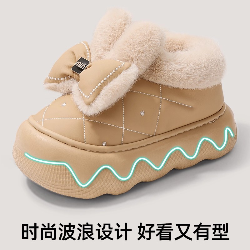 天猫日本防水棉拖鞋女士冬季外穿包跟厚底防滑静音毛绒保暖毛毛棉鞋