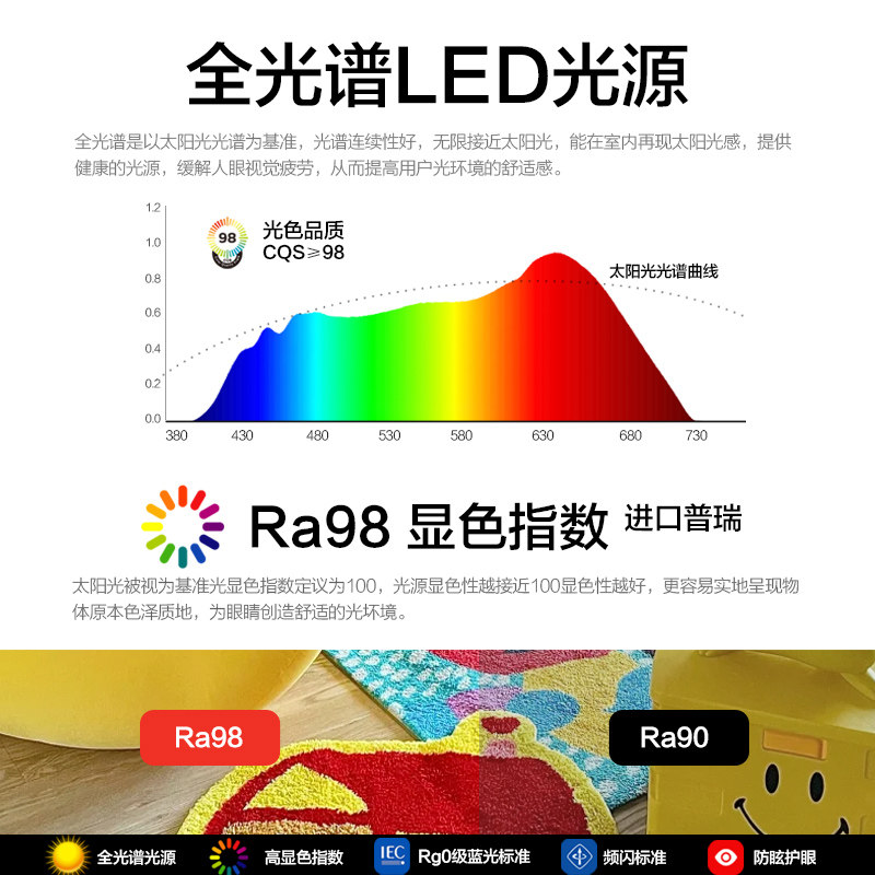 2026年全新推出的全光谱护眼吸顶灯,专为卧室、主卧及儿童房设计,融合简约现代美学与先进护眼科技。采用普瑞高品质光源,模拟自然太阳光谱,显色指数高达Ra95以上,有效减少蓝光危害,无频闪、无眩光,为眼睛提供舒适柔和的照明环境。灯体设计简洁大方,适配多种装修风格,光线均匀覆盖整个空间,营造温馨静谧的居家氛围。智能调光调色功能,满足不同场景需求,尤其适合孩子阅读学习与成人夜间休息。节能环保,寿命长,是守护全家视力健康的理想选择。
