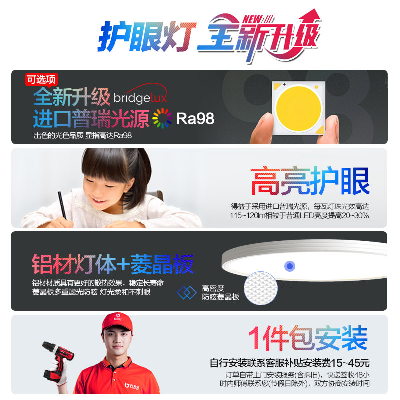 26新-欧普LED全光谱无缝贴顶儿童护眼吸顶灯具饰客厅卧室灯朗澈TC