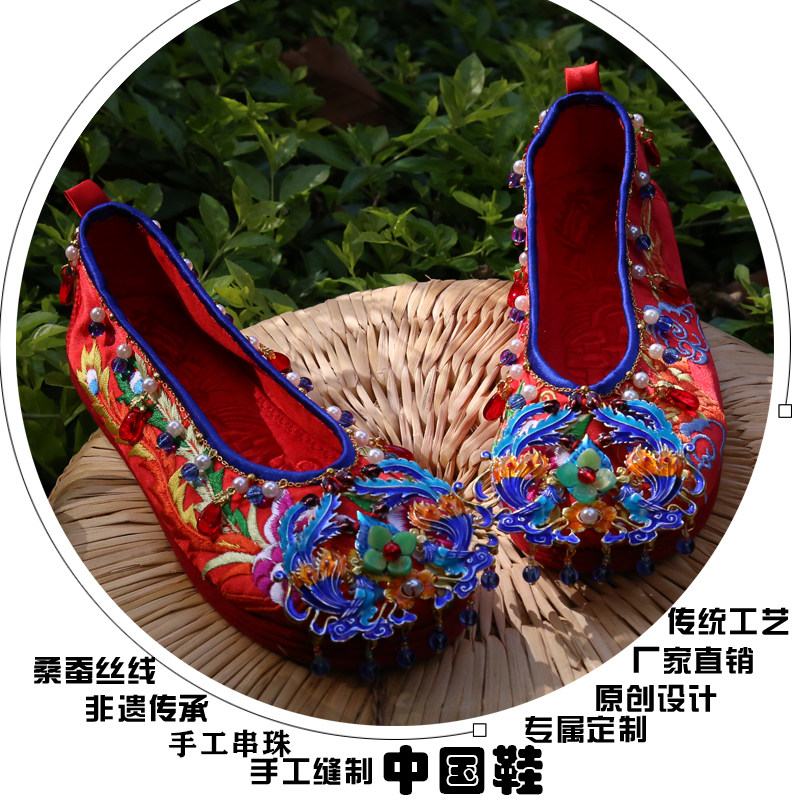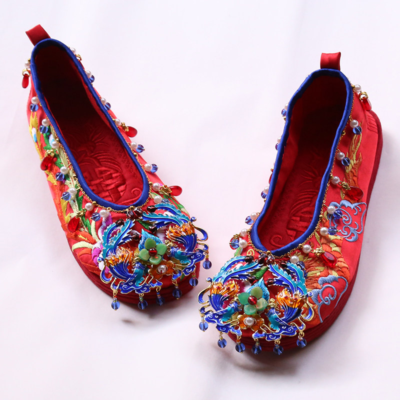 淘宝走绣坊新款原创于飞手工烧蓝定制中式婚鞋秀禾服学院结婚绣花鞋