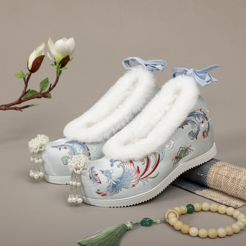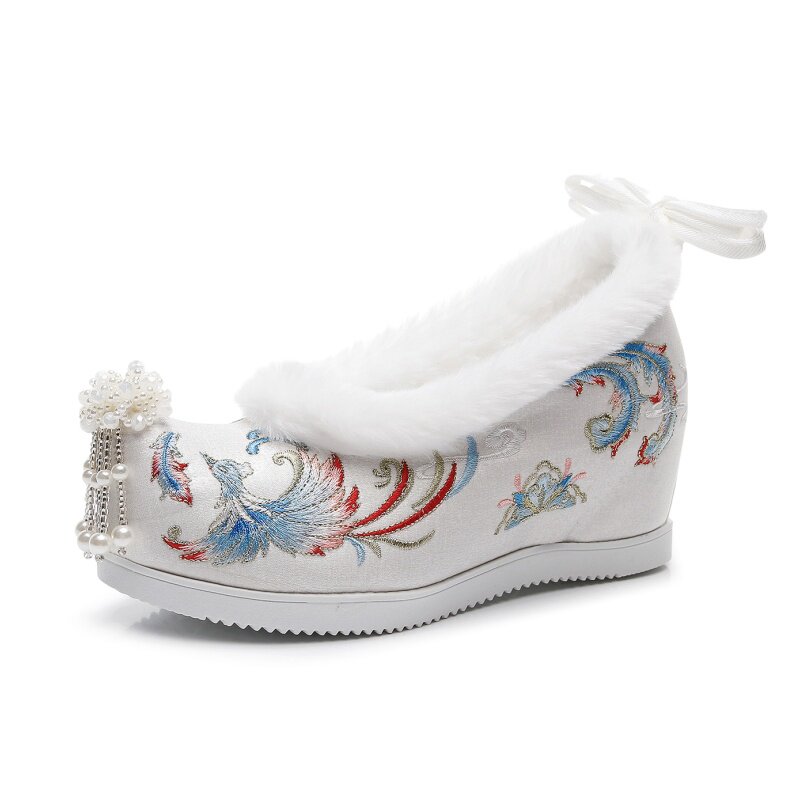 淘宝新款秋冬季汉服鞋子女加绒高跟古风鞋子内增高古装配马面裙绣花鞋