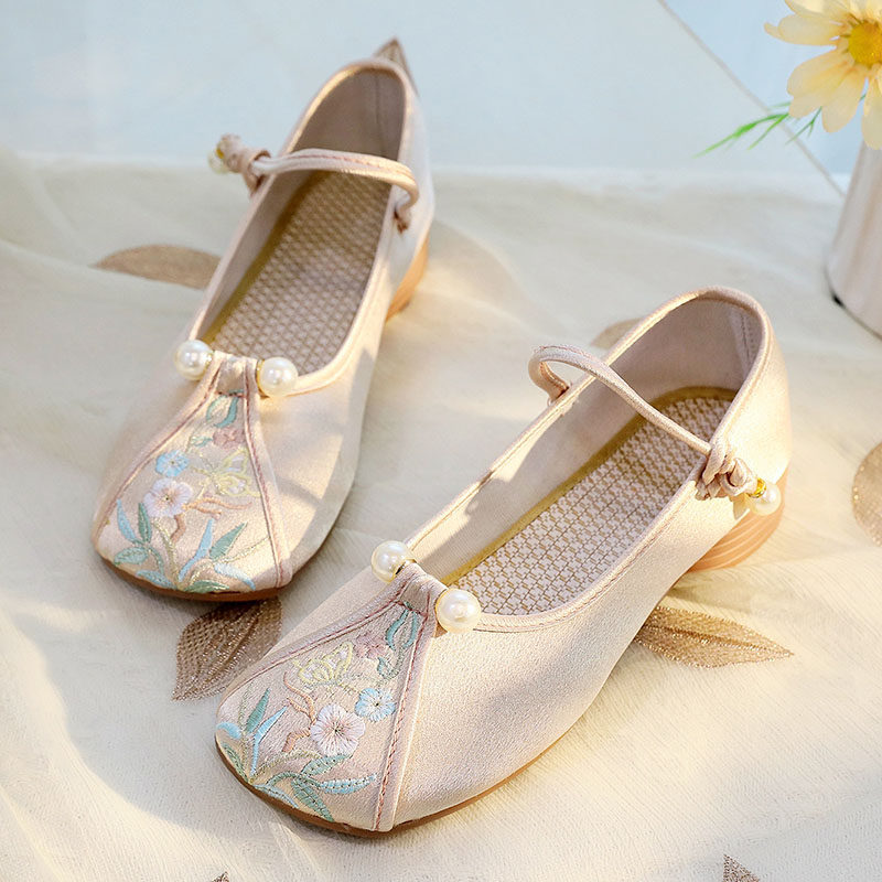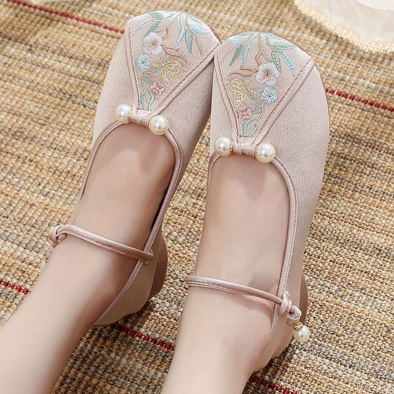 北京女绣花鞋平底牛筋底汉服民族风春秋单鞋中国风复古跳舞鞋软底