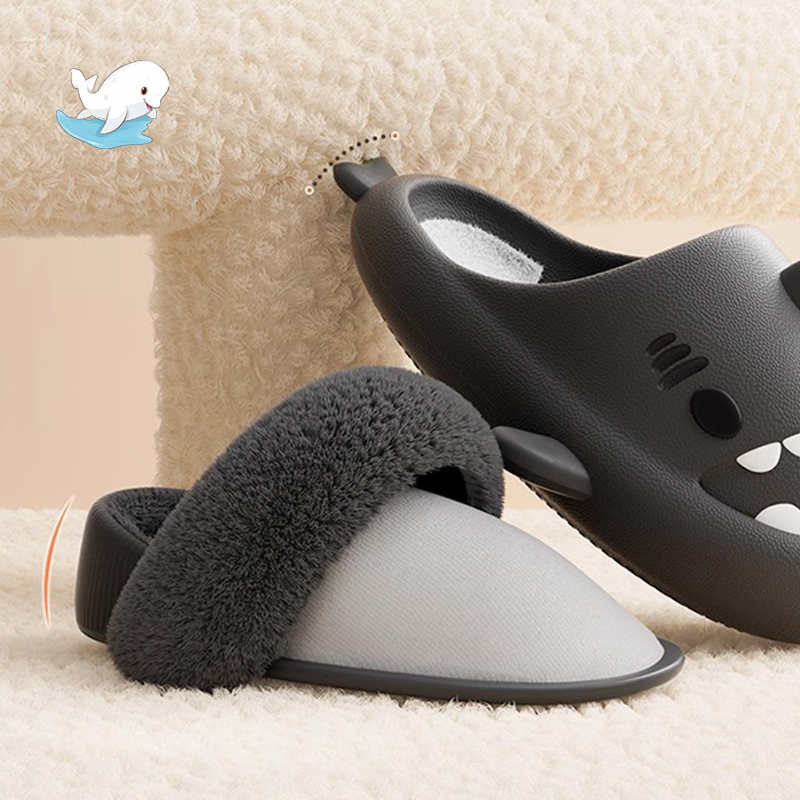 淘宝小鲨鱼棉拖鞋冬季保暖防滑防水可拆洗居家可外穿加厚男女毛毛拖鞋