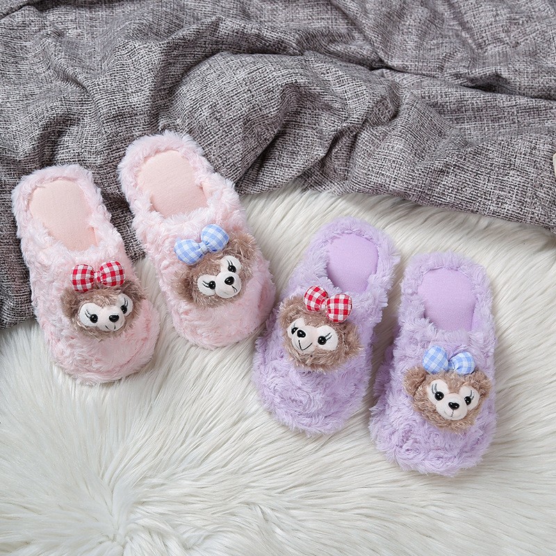 淘圣诞风蝴蝶结小狗毛绒冬季新款拖鞋加厚居家防滑防水棉拖女室内鞋