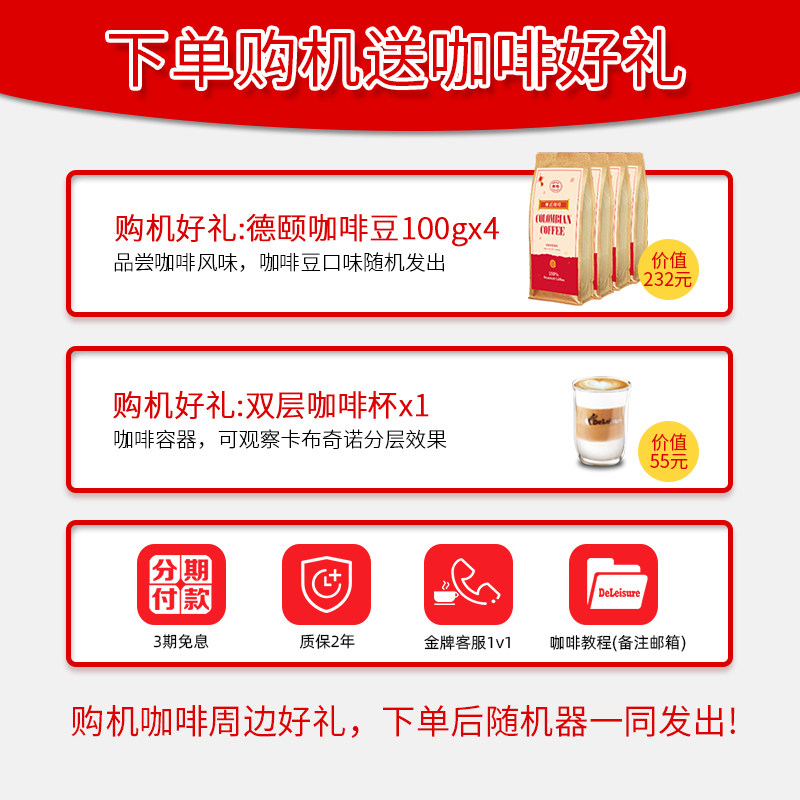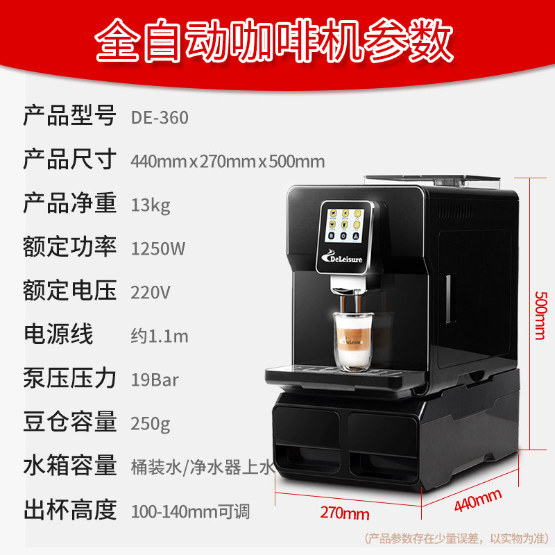 天猫【政府补贴15%】德颐360商用办公室全自动上水咖啡机触屏意式美式