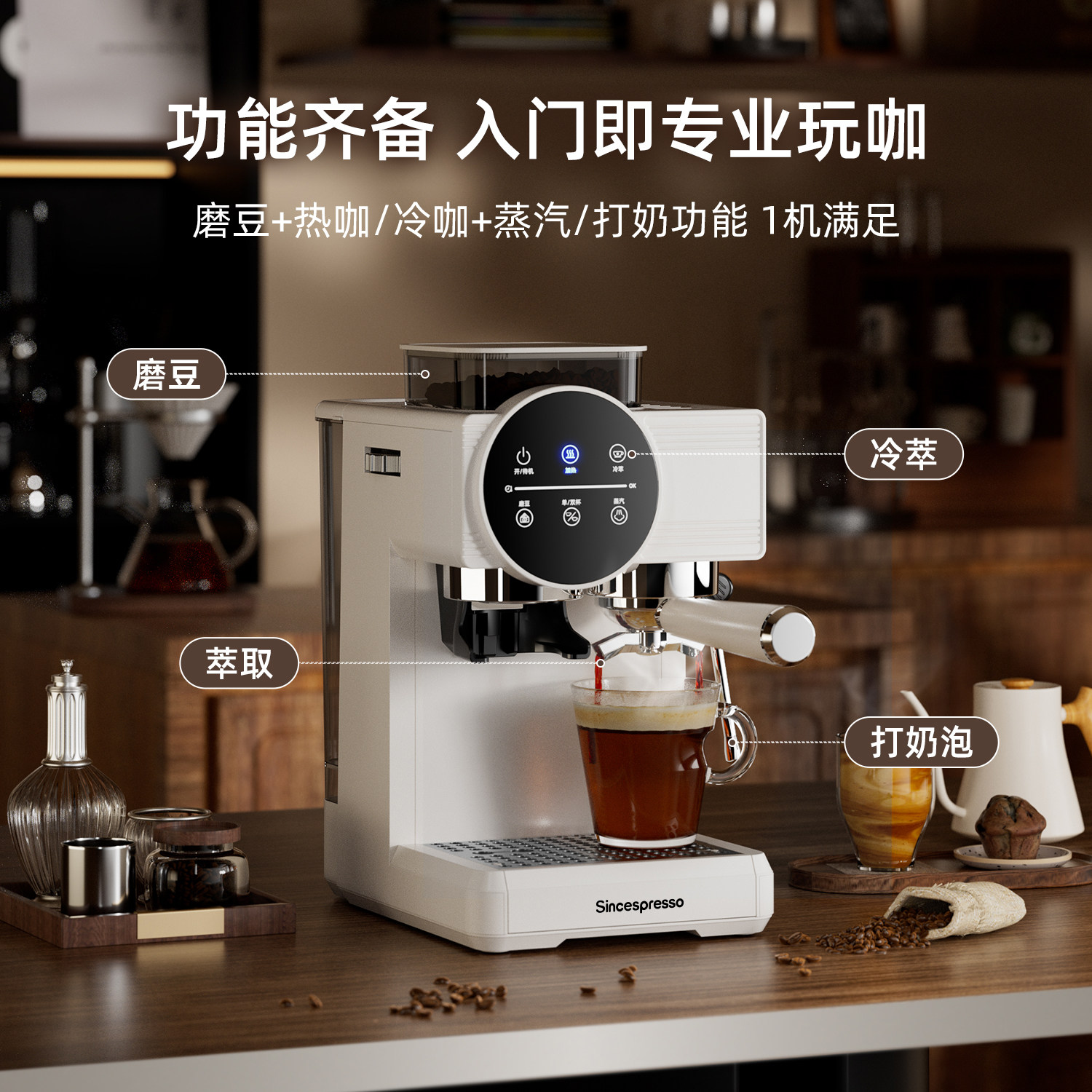 Sincespresso诗派索咖啡机家用意式半自动研磨豆一体机冷热双萃