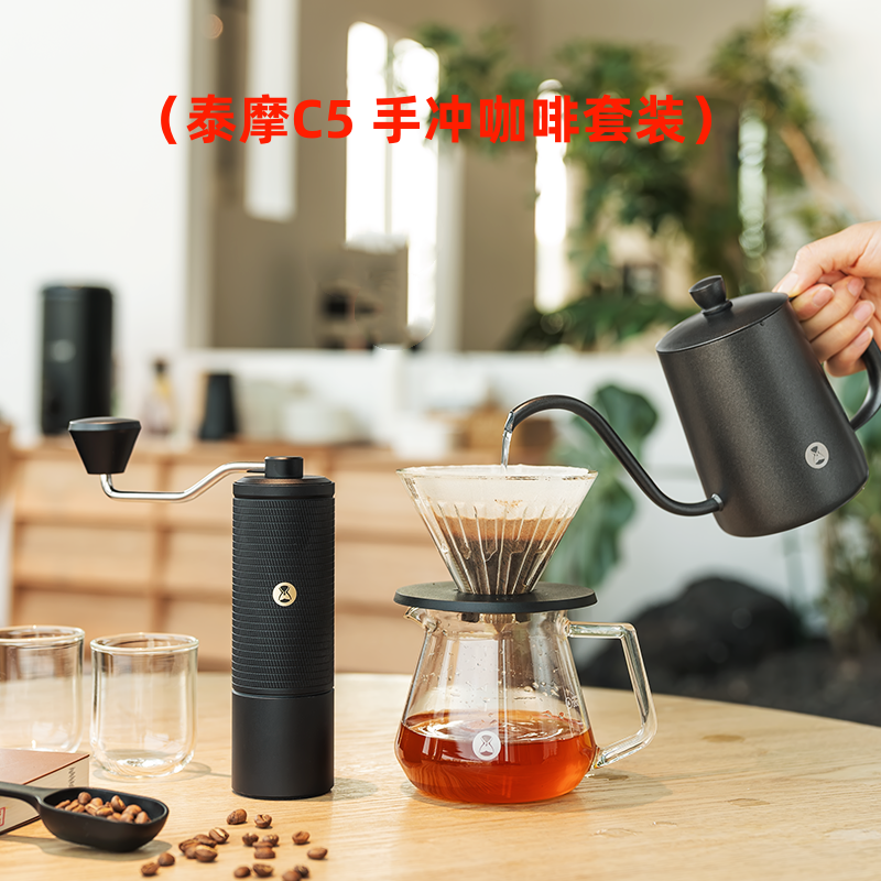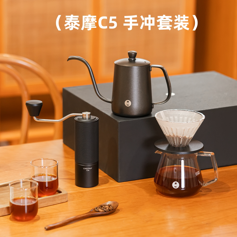 淘宝泰摩 栗子C5手冲咖啡壶套装 家用 手冲壶礼盒 手摇磨豆机器具礼品