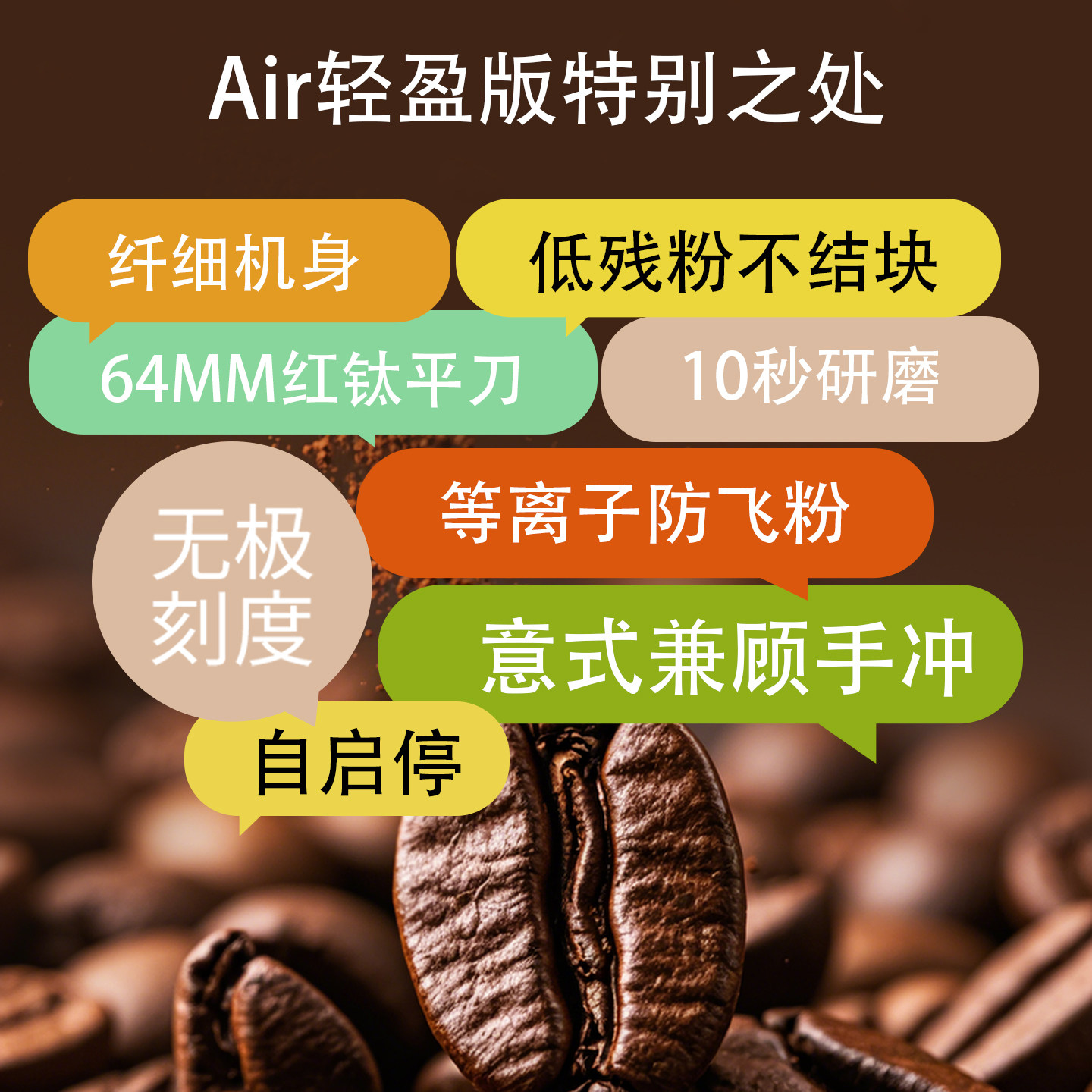 咖际DF64Air轻盈版V是一款专为SOE(单一产地咖啡)爱好者设计的迷你小型电动咖啡磨豆机。采用高品质钛合金磨盘,确保研磨均匀、耐用且减少发热,最大程度保留咖啡豆的原始风味。轻盈紧凑的机身设计,兼顾家用与便携需求,操作简便,一键启动即可实现精准单剂量研磨。支持多段式研磨调节,适配手冲、意式等多种萃取方式。低噪音运行,清洁维护便捷,是追求精品咖啡体验的理想之选。无论是居家冲泡还是户外旅行,DF64Air轻盈版V都能为你呈现专业级研磨品质,开启每一杯咖啡的纯粹风味之旅。