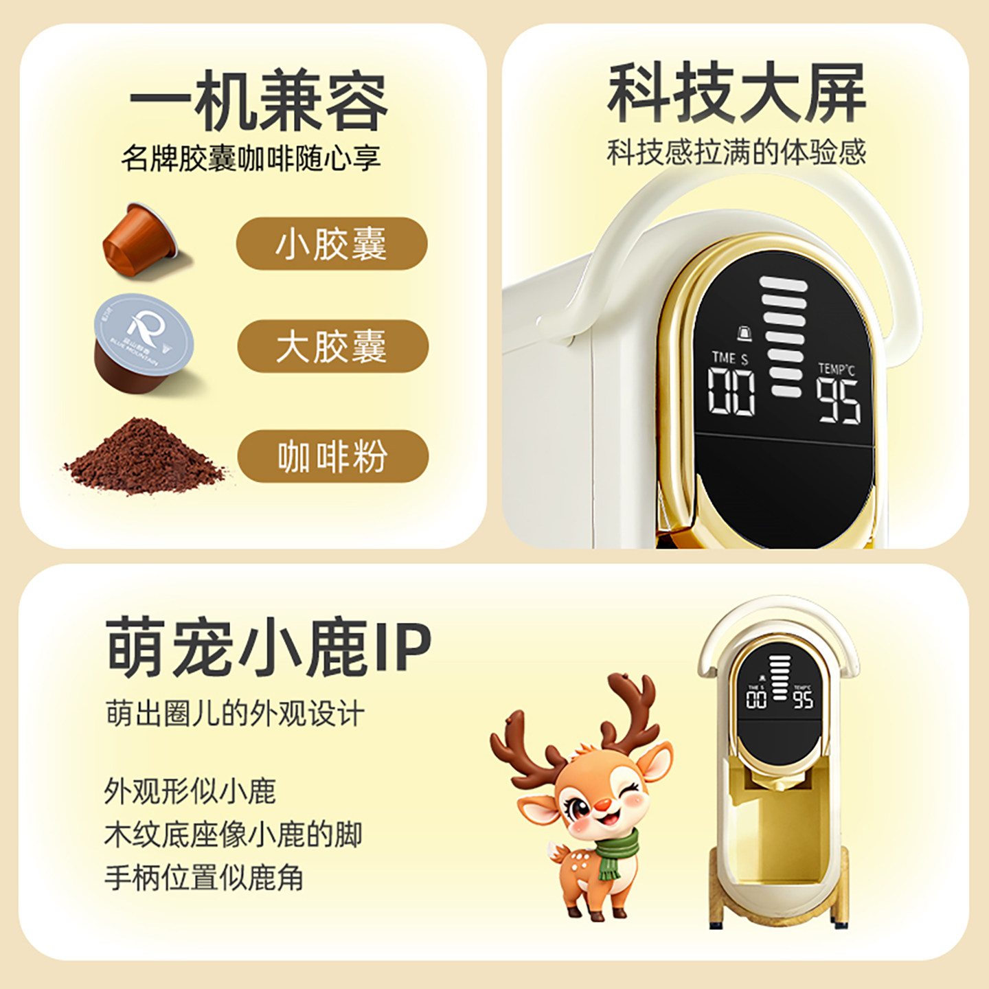 天猫艾尔菲德萌智小鹿胶囊粒咖啡机迷你全自动咖啡粉两用小型家用新款