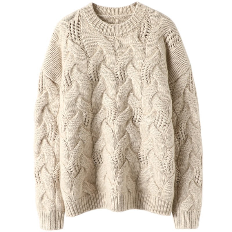 天上身气质显品味~重磅加厚圆领羊绒衫女纯羊绒毛衣针织衫宽松冬