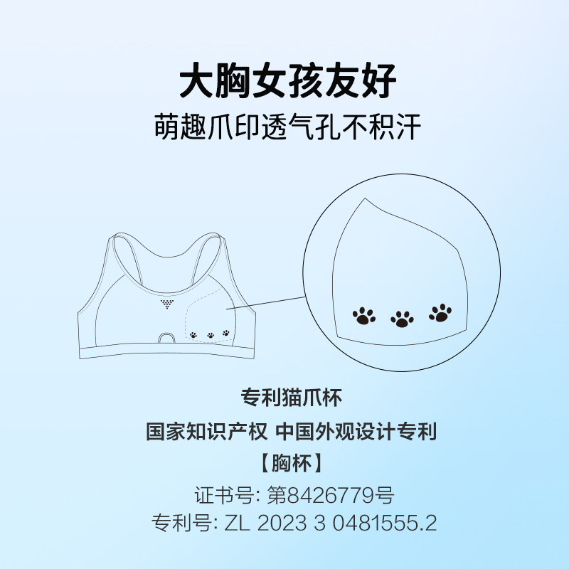 爱慕少女小冰皮少女三阶段背心式猫爪杯运动文胸,专为青春期少女设计,融合舒适、功能与萌趣元素。采用吸湿速干科技面料,清爽透气,运动出汗也能快速排湿;内置抗菌处理,呵护敏感肌肤。独特“猫爪杯”造型,贴合胸型并提供适度承托,背心式设计稳定不勒肩,适合日常与轻度运动。三阶段可调节设计,随成长灵活适配,贴心陪伴少女蜕变。柔软亲肤的冰皮质感,轻盈无感,搭配萌趣猫爪印花,颜值与实用兼具,是青春期女孩自信成长的理想之选。