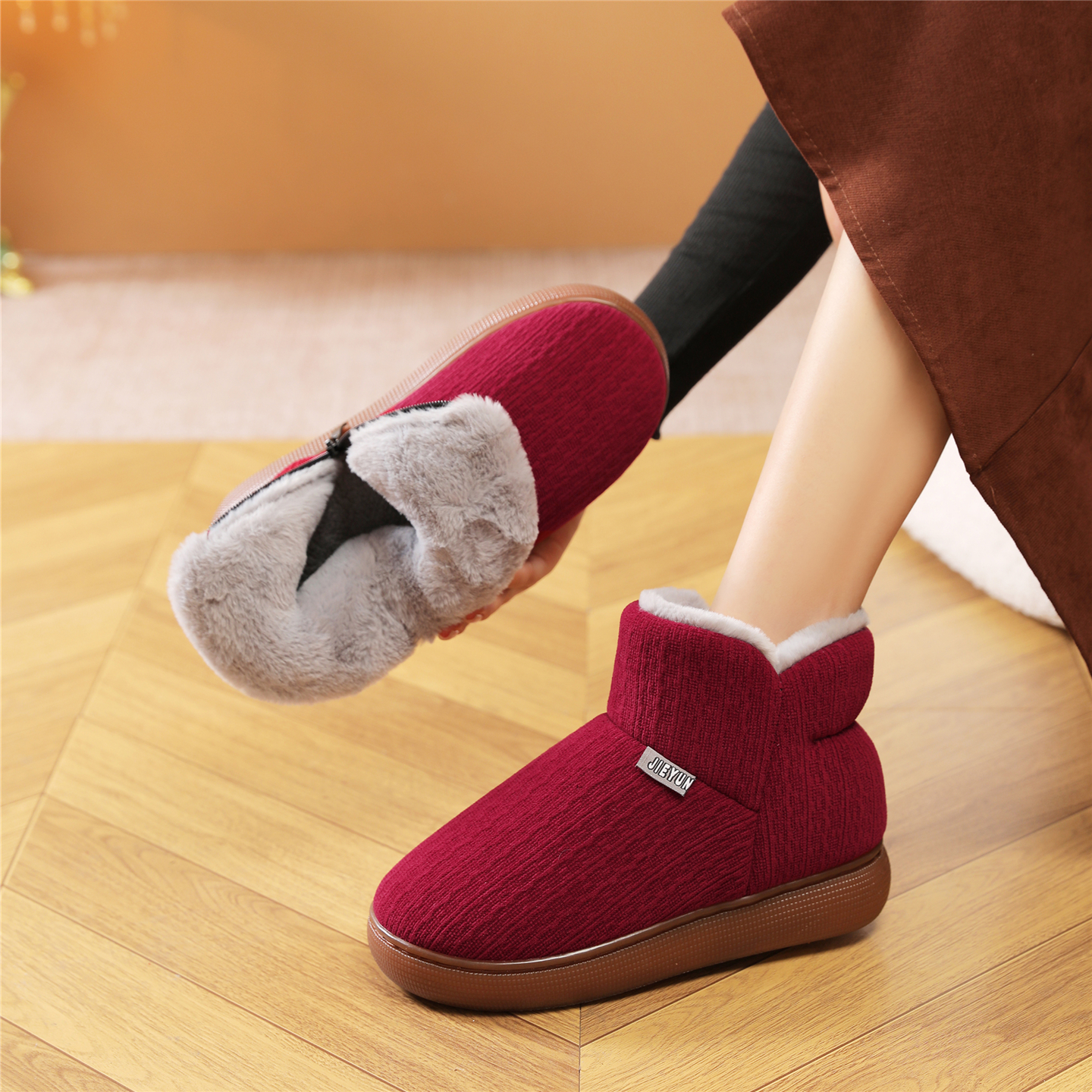 淘宝冬季加绒加厚男女款保暖棉鞋中老年居家外穿防滑拉链高包跟棉拖鞋