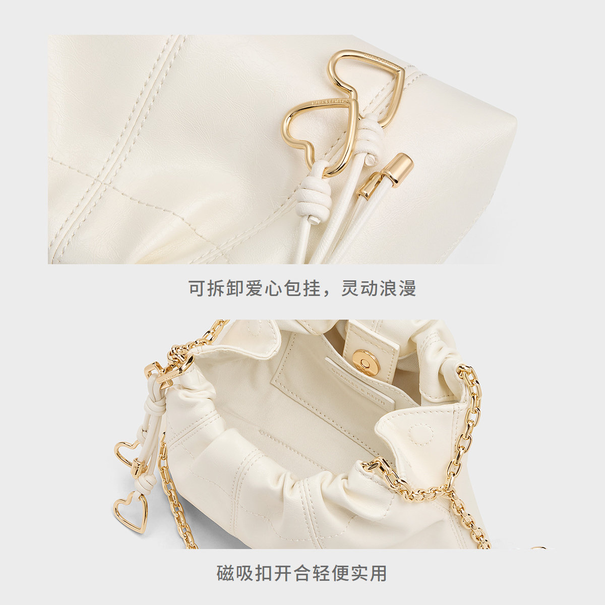 CHARLES & KEITH 2026春季新款CK2-80151612包挂油蜡皮单肩云朵包,以柔软廓形诠释现代优雅。采用优质油蜡皮材质,质感细腻,随使用呈现独特光泽,彰显高级品味。云朵般蓬松包身设计,线条流畅,兼具时尚与实用,轻松容纳日常 essentials。搭配可调节金属链条肩带,可单肩、斜挎或手提,满足不同场合需求。精致包挂装饰增添细节亮点,尽显品牌巧思。无论是通勤、约会或休闲出行,这款包都能为造型注入轻盈时髦感,是2026春夏不可或缺的百搭单品,完美融合潮流与功能性,展现自信都市风范。