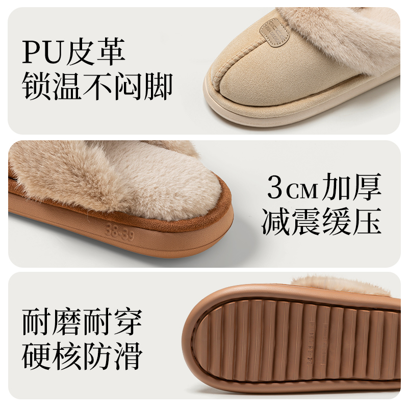 淘宝保暖厚底情侣秋冬季毛毛加绒无声棉拖鞋男女家居室内家用地板防滑