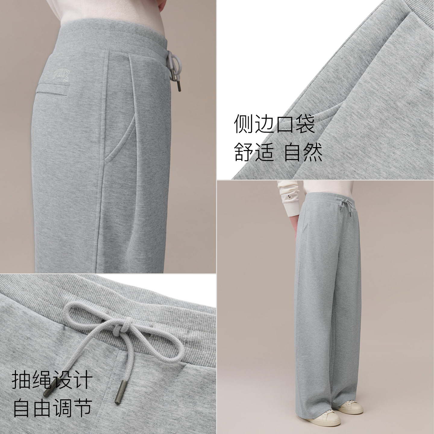 【双面针织】Hazzys哈吉斯灰色宽松卫裤,融合时尚与舒适,专为现代女性打造。采用高品质双面针织面料,柔软亲肤、透气有弹性,兼顾挺括感与垂坠感。宽松版型设计,包容各种身材,轻松驾驭通勤、运动与休闲场景。经典灰色调低调百搭,侧边品牌标识点缀,彰显英伦优雅气质。腰间抽绳设计,穿脱便捷,贴合身形。无论是搭配针织衫打造秋日通勤look,还是配卫衣享受周末惬意时光,都能展现随性而不失格调的风格,是秋季衣橱不可或缺的实用单品。