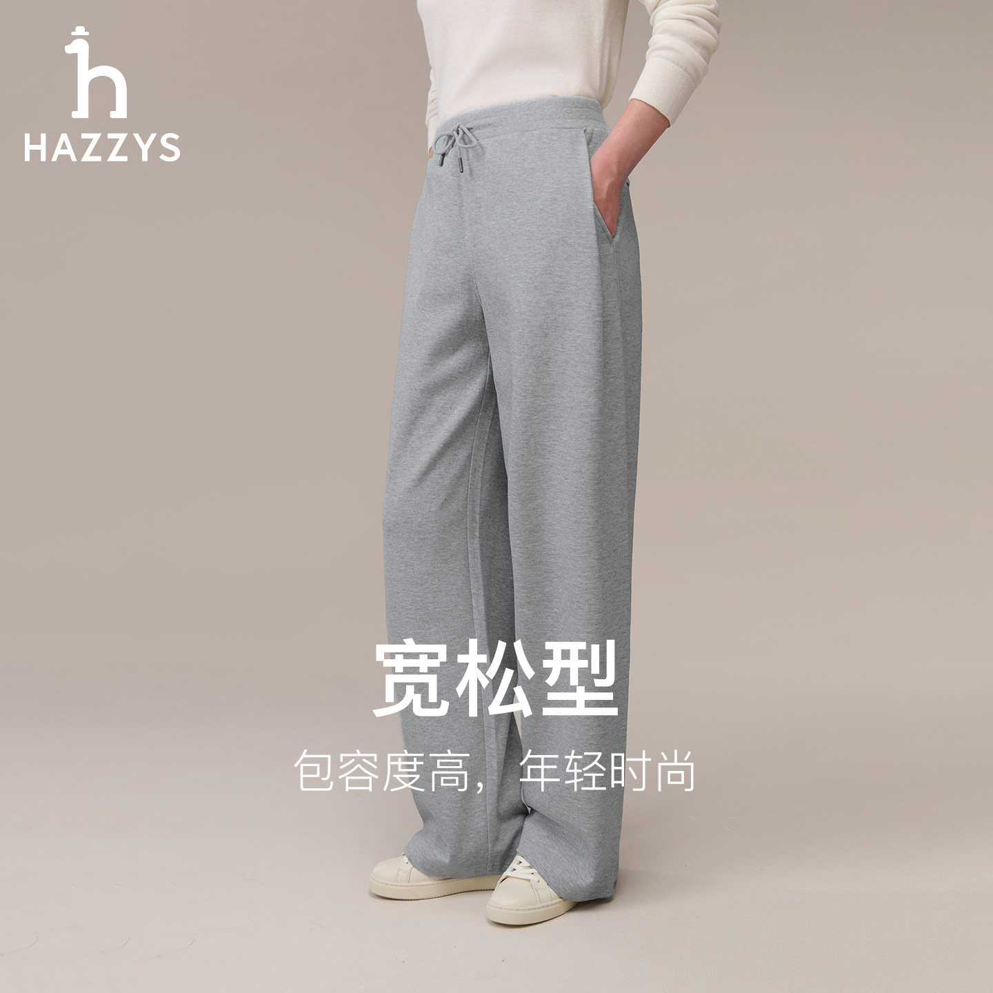 天猫【双面针织】Hazzys哈吉斯灰色宽松卫裤女士秋季通勤运动休闲裤