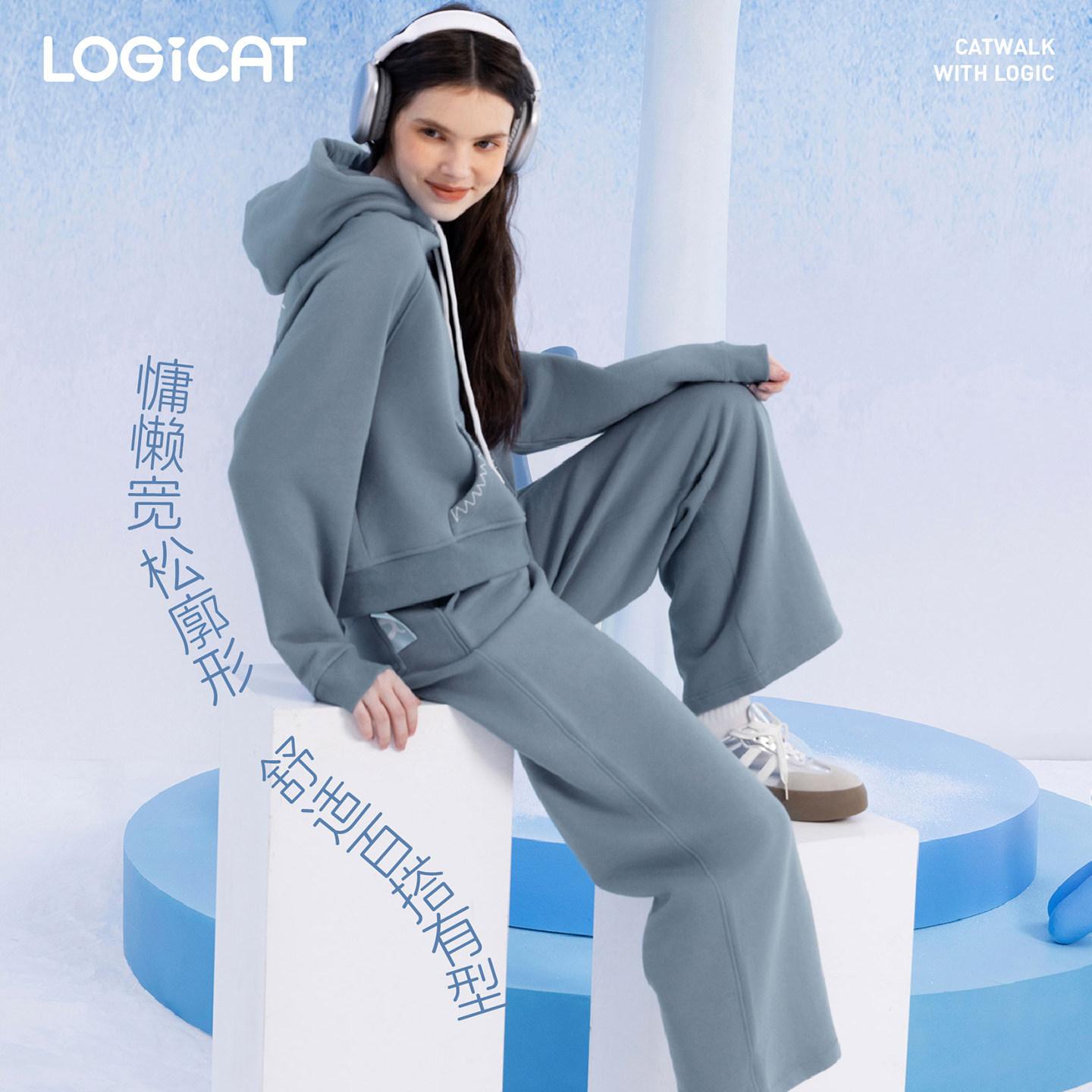 天猫LOGICAT薄绒卫裤宽松百搭女款春季薄绒直筒垂感休闲运动长裤