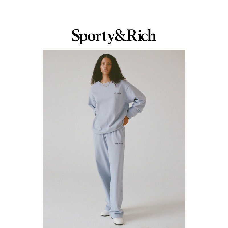 天猫[明星同款]Sporty&Rich 男女同款纯色简约运动休闲宽松直筒长裤