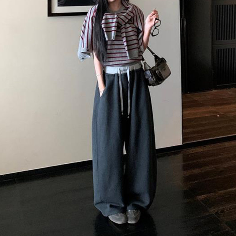 SW速惟灰色直筒休闲长裤女宽松阔腿藏肉显瘦香蕉裤垂感运动卫裤子