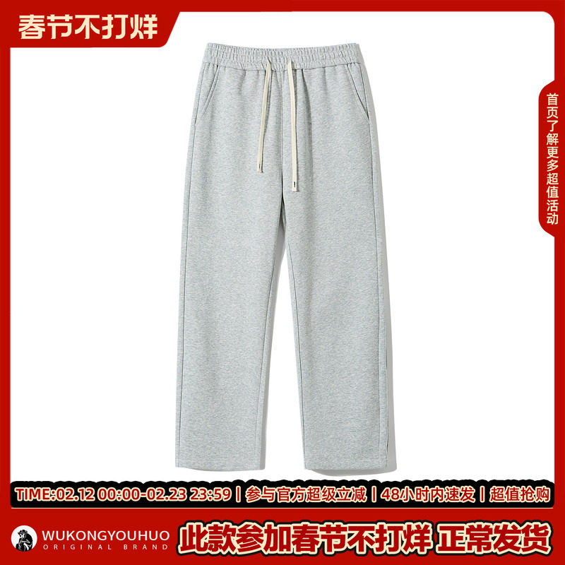 直筒卫裤男冬季垂感重磅灰色休闲长裤百搭运动裤学生宽松阔腿裤子