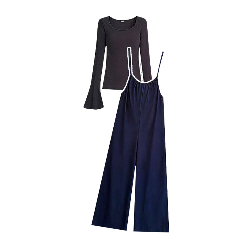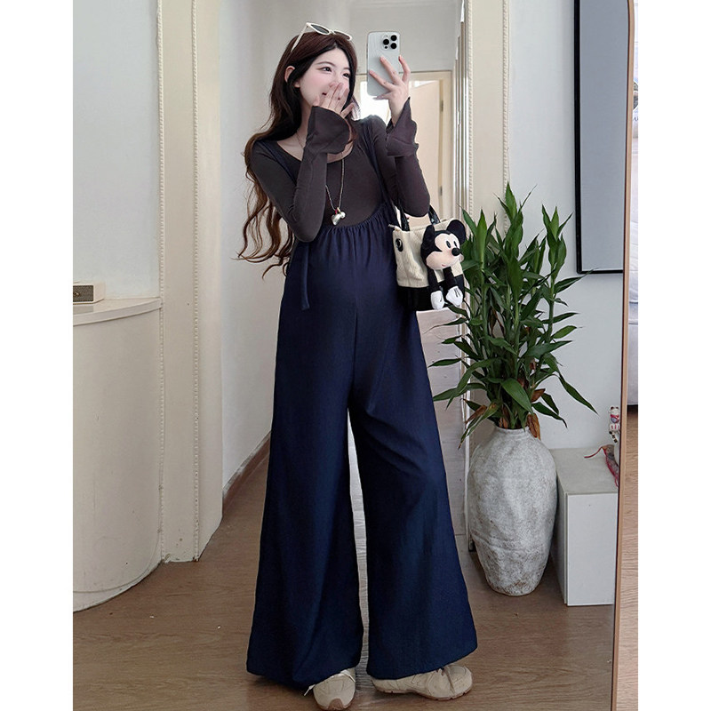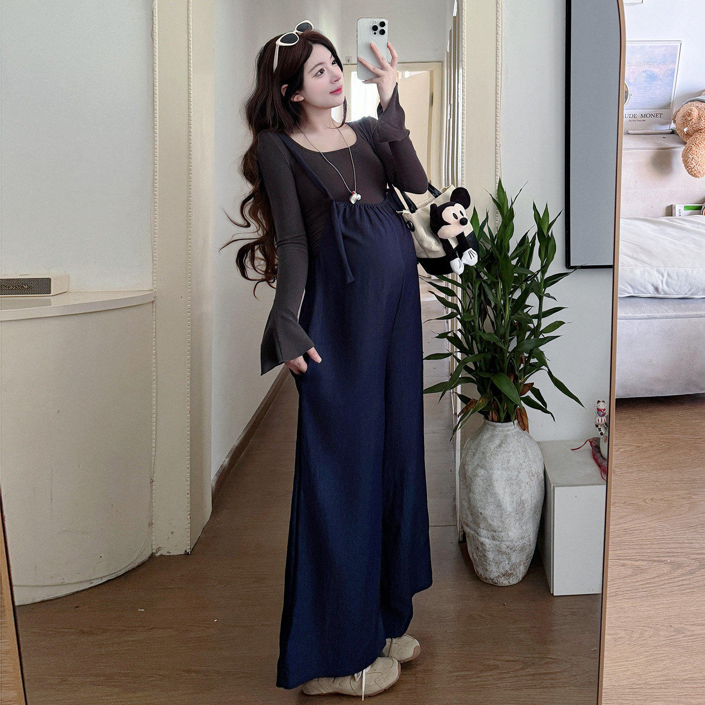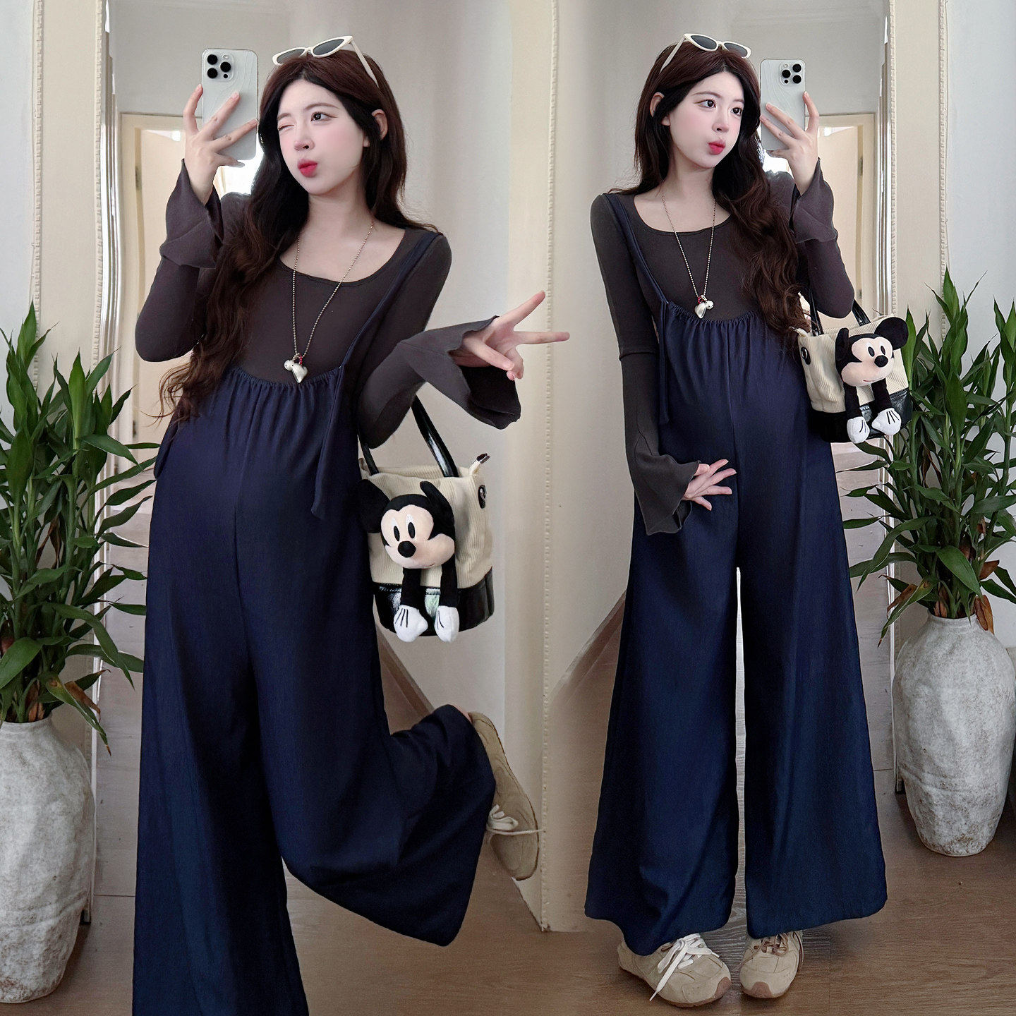淘宝孕妇藏青色套装春秋2026新款宽松慵懒风孕期穿搭潮妈背带裤两件套