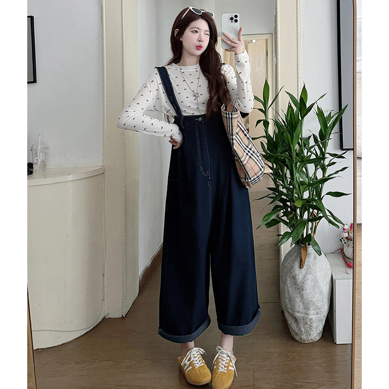 孕之优品孕妇牛仔背带裤春秋款宽松减龄时尚2026新款孕妇装阔腿裤