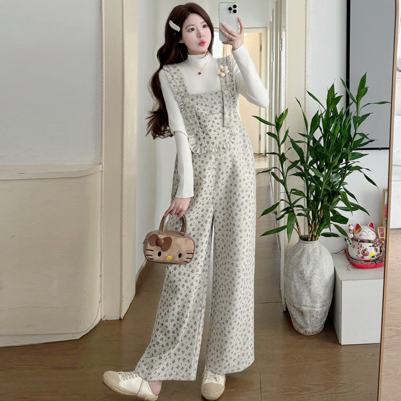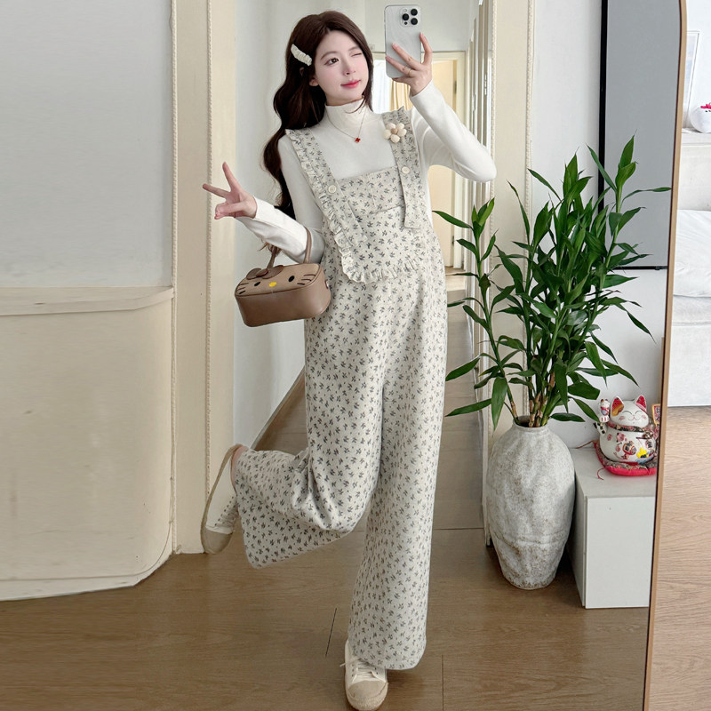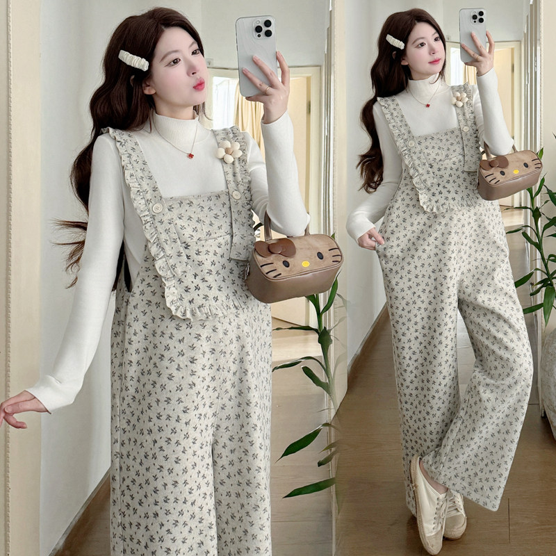 淘宝孕妇套装春秋2026新款气质休闲碎花背带裤上衣两件套百搭不挑人女