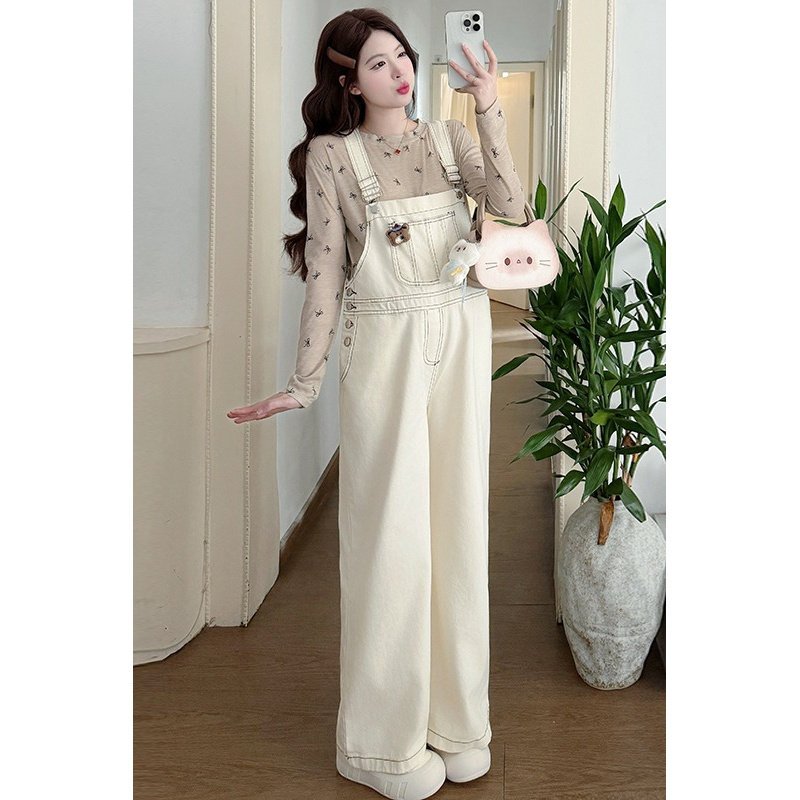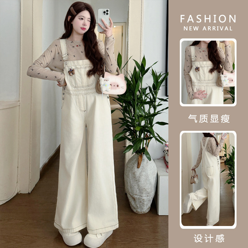 孕之优品孕妇牛仔背带裤春秋款宽松减龄时尚2026新款孕妇装阔腿裤