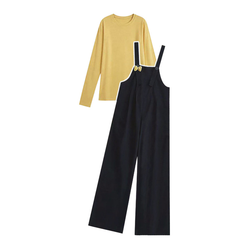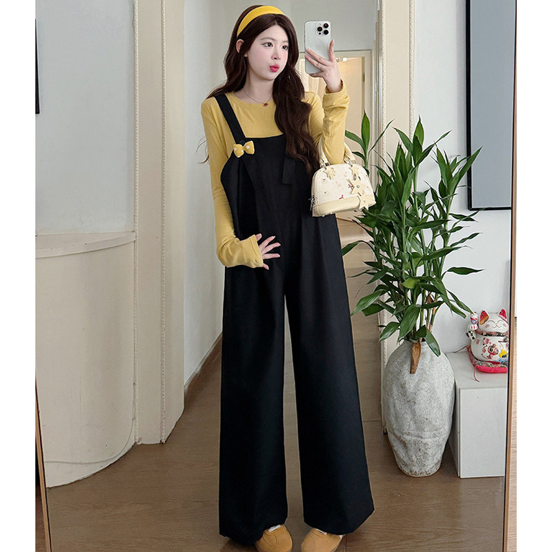 淘宝孕妇套装春秋季2026新款时尚黑色不显怀背带裤上衣孕妈穿搭两件套