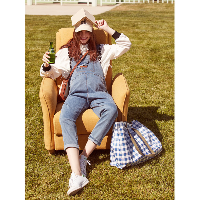 快乐屋孕妇背带裤春夏棉弹斜纹简约直筒裤休闲长裤孕妇裤子牛仔裤