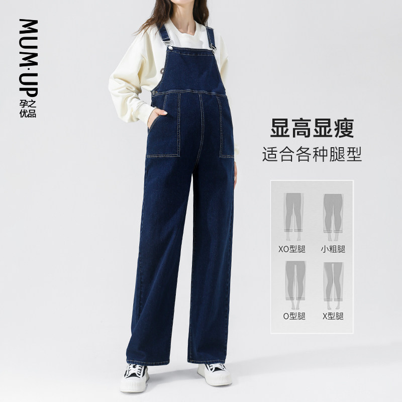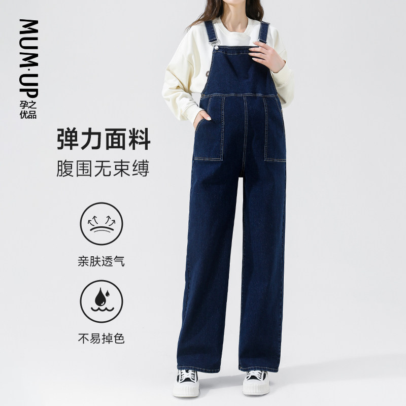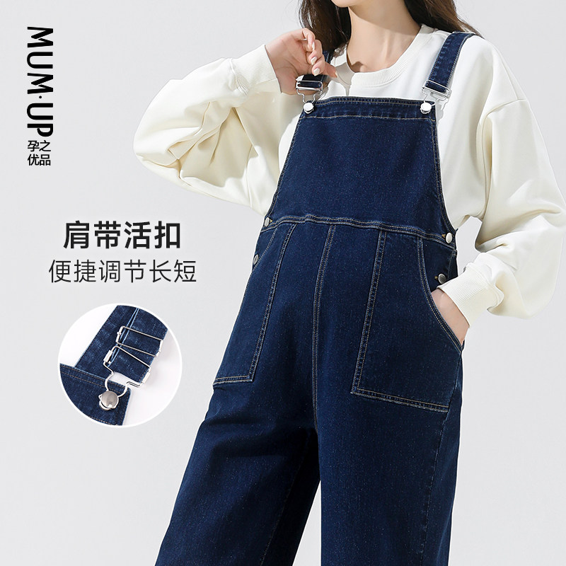 天猫孕之优品孕妇牛仔背带裤春秋款宽松减龄时尚2026新款孕妇装阔腿裤