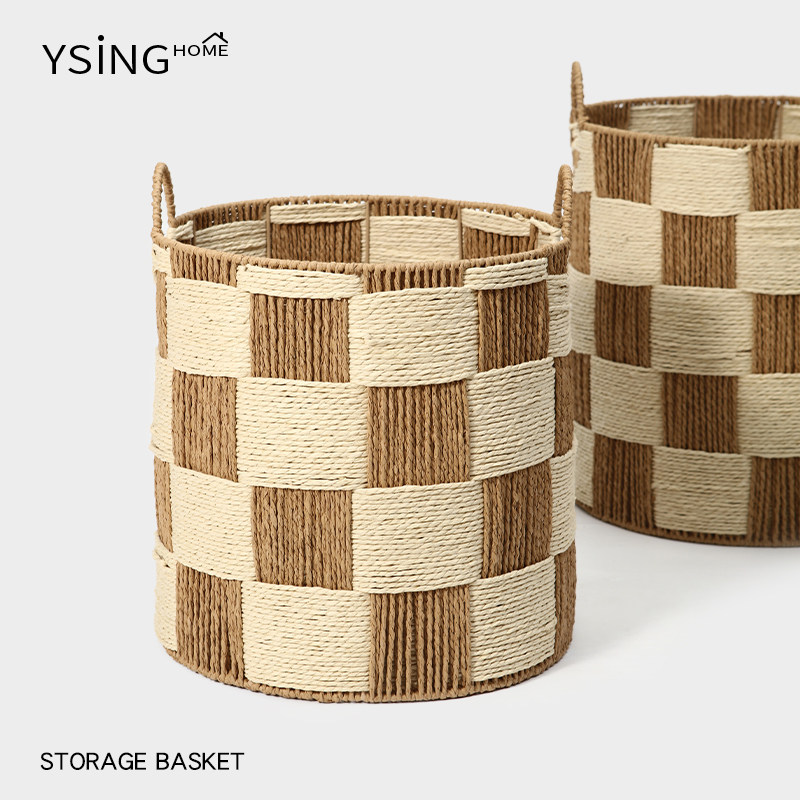 天Kens 收纳筐仿藤编 日式简约木把手客厅整理筐 零食筐杂物收纳篮
