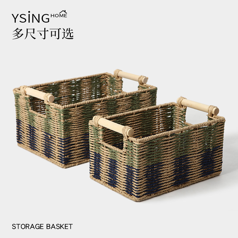 天Kens 收纳筐仿藤编 日式简约木把手客厅整理筐 零食筐杂物收纳篮