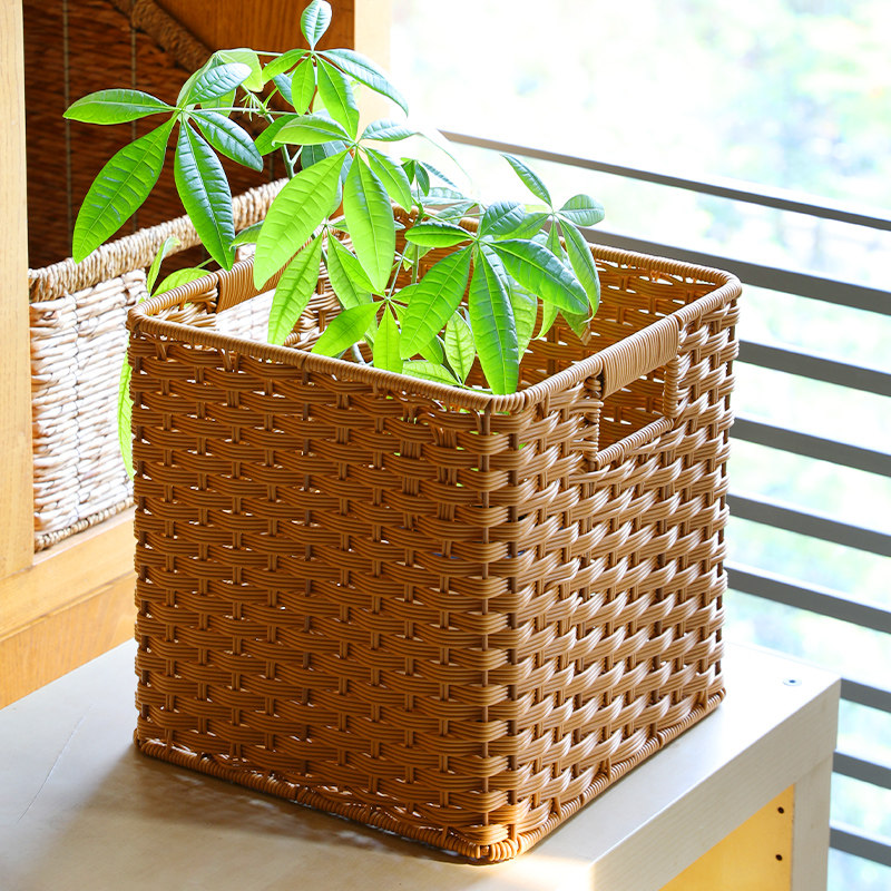 大号仿藤编书架收纳筐定制格子柜置物篮客厅橱柜杂物整理箱编织篮