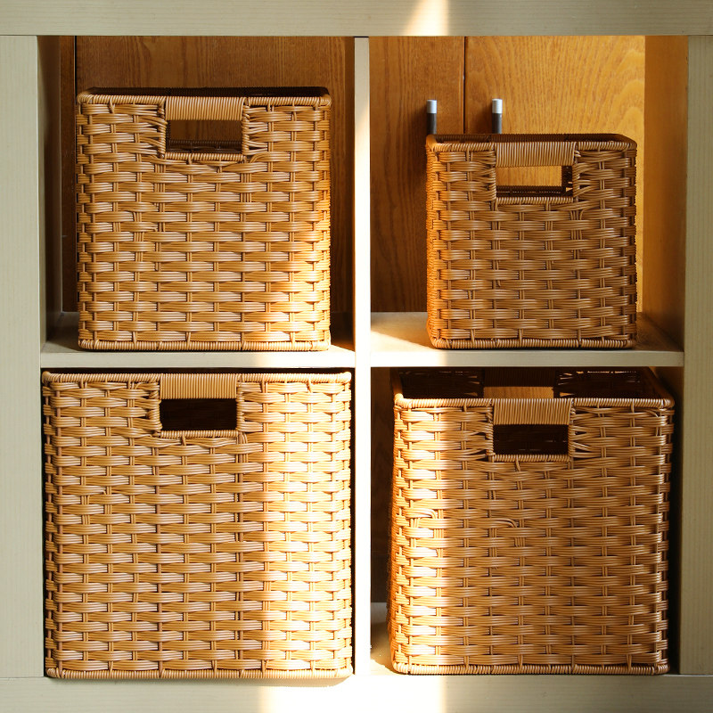 淘大号仿藤编书架收纳筐定制格子柜置物篮客厅橱柜杂物整理箱编织篮