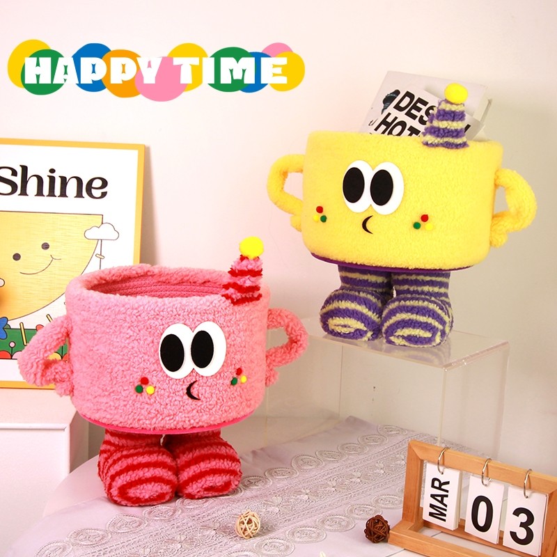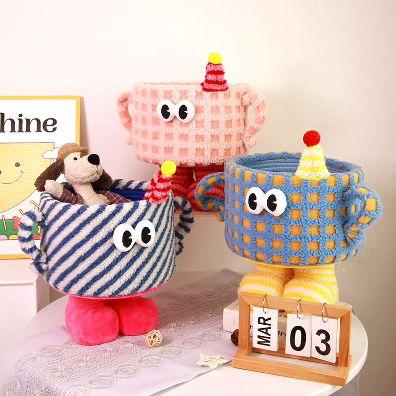 淘宝儿童卡通编织篮家用桌面摆件网红可爱羊羔绒小怪兽棉绳零食收纳筐