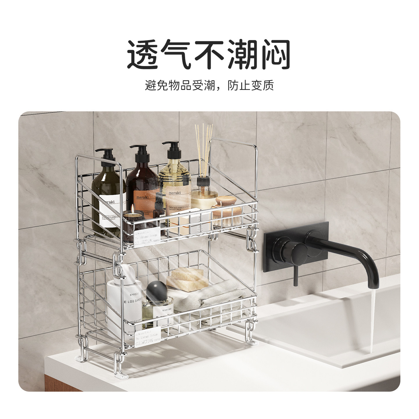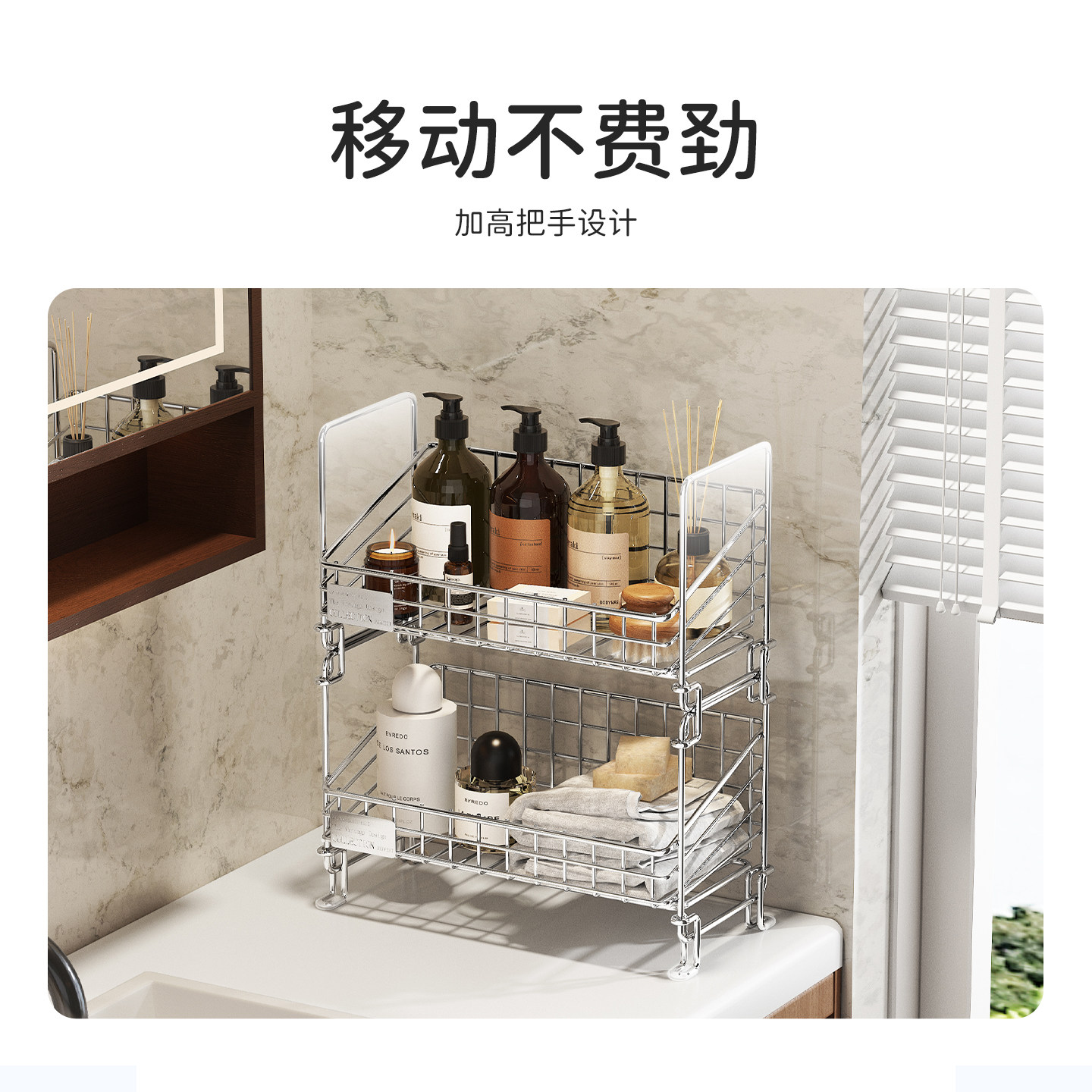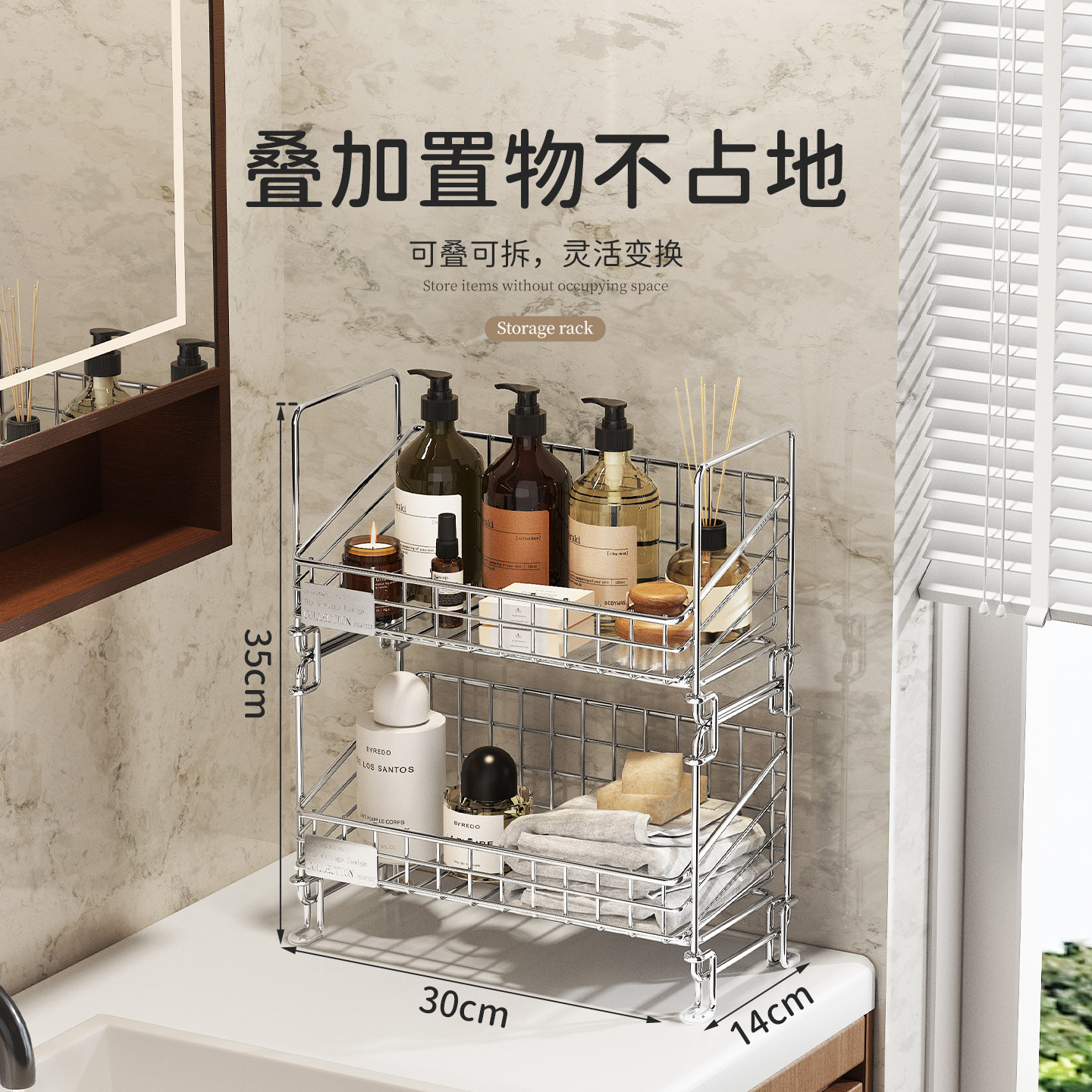 天猫不锈钢置物架浴室收纳架卫生间洗漱用品整理架台面叠加多层储物篮