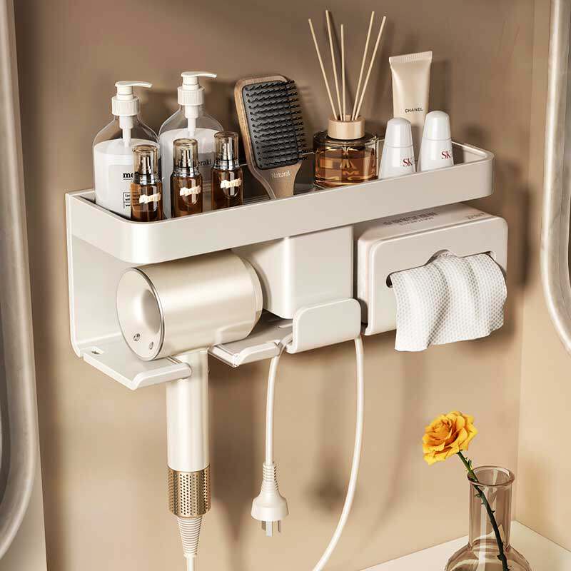 天猫吹风机置物架一体多功能卫生间免打孔浴室挂电吹风筒支架纸巾收纳