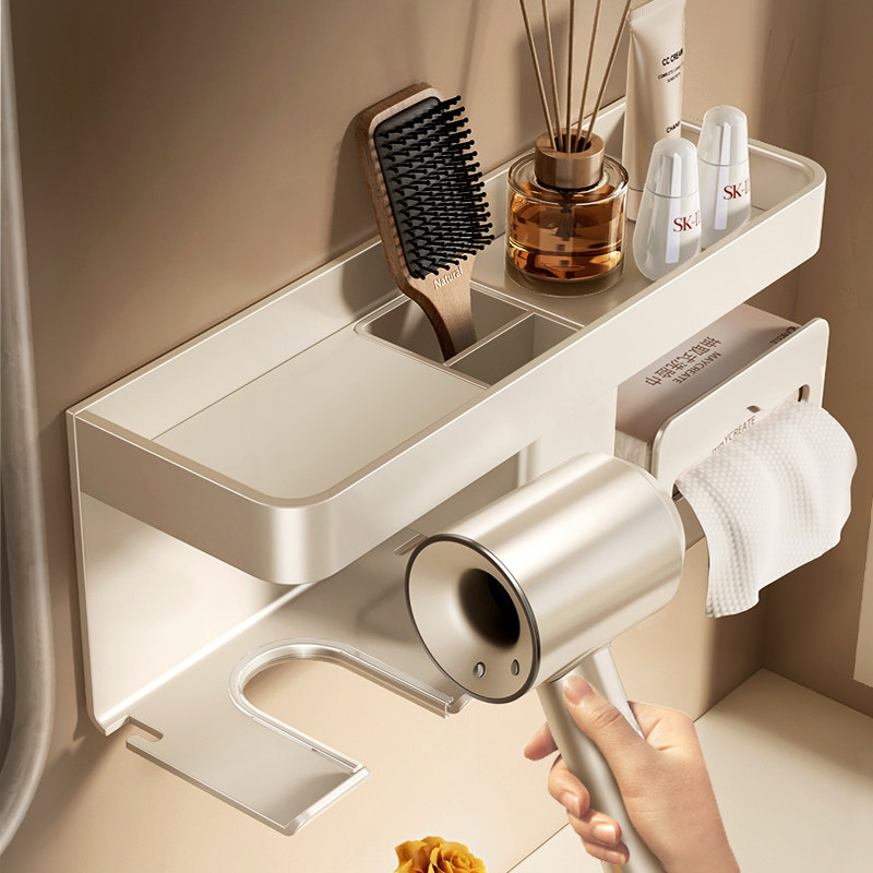 这款吹风机置物架一体多功能支架,专为现代浴室设计,集电吹风筒收纳、纸巾架、置物台于一体,空间利用率高。采用免打孔安装设计,无需钻孔,不伤墙面,粘贴牢固,适用于瓷砖、玻璃等多种光滑表面。支架设有专用吹风筒卡槽,稳固防滑,取用便捷;上层平台可放置护肤品、香薰等小物件,侧边集成纸巾架,轻松抽取。整体采用防水防腐材质,耐潮湿、易清洁,美观实用。无论是小户型还是精装浴室,都能提升整洁度与使用便利性,是提升卫浴体验的理想之选。