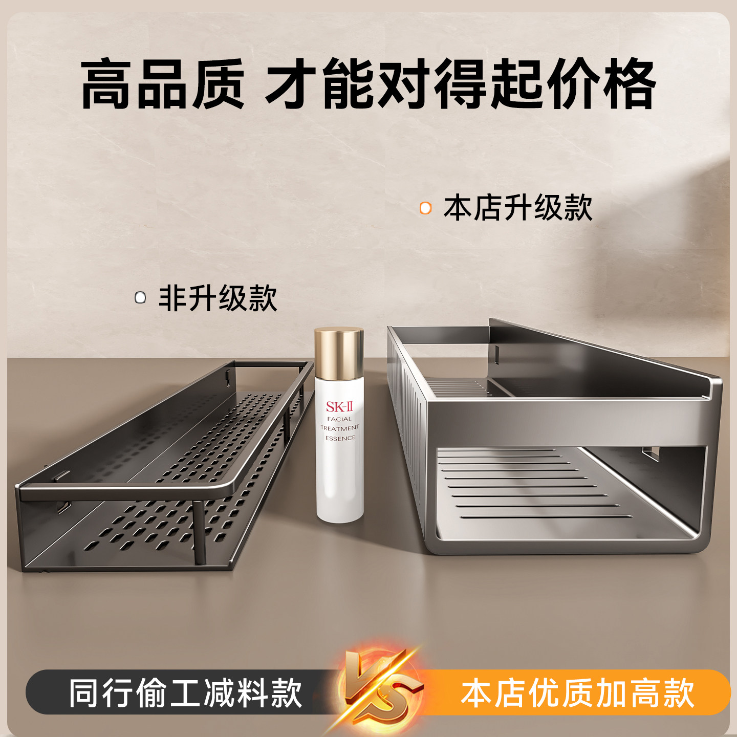 百悍卫生间置物架是一款免打孔设计的实用收纳神器,采用强力吸盘或胶贴固定,无需钻孔即可牢固吸附于瓷砖、玻璃等光滑墙面,安装简便且不伤墙体。适用于浴室、厕所、洗漱台等多种场景,有效利用垂直空间,收纳洗发水、沐浴露、牙刷杯、香皂等日常用品,保持台面整洁。优质材质防水防锈,承重力强,持久耐用。壁挂与台面两用设计,灵活适配不同空间需求。百悍置物架不仅提升浴室美观度,更让洗漱用品触手可及,是提升居家生活品质的贴心之选,真正实现“小空间大收纳”的理想效果。