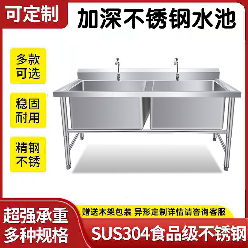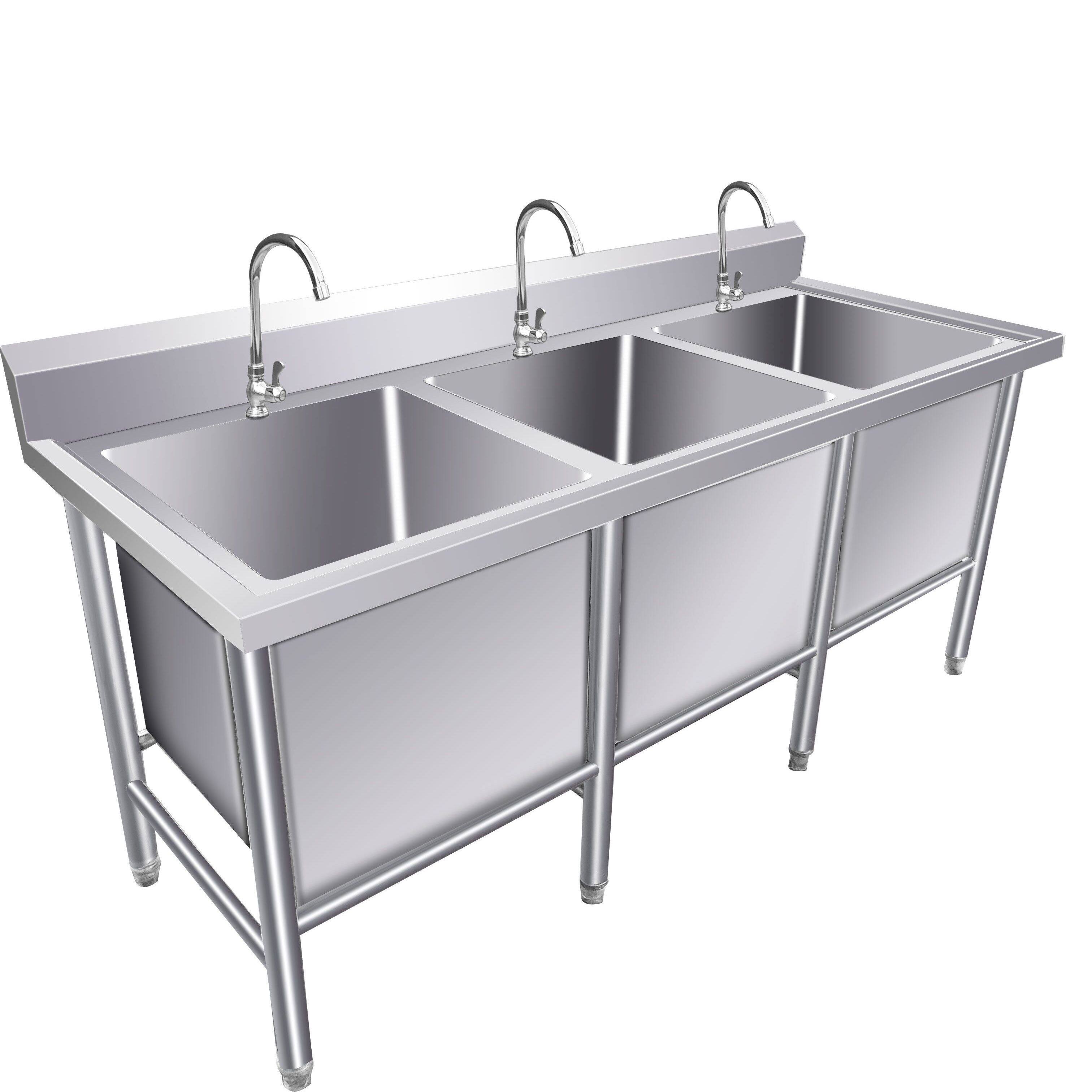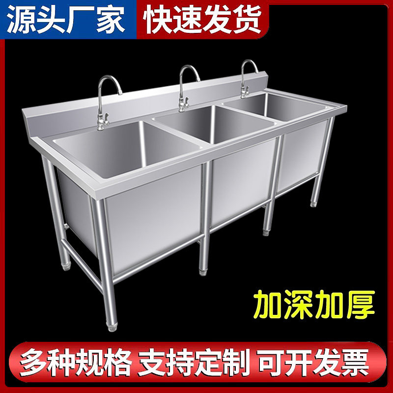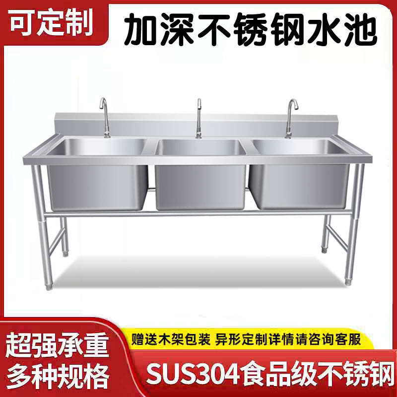 淘宝商用不锈钢水槽304三槽带支架加深双三池槽食堂厨房解冻池洗菜盆