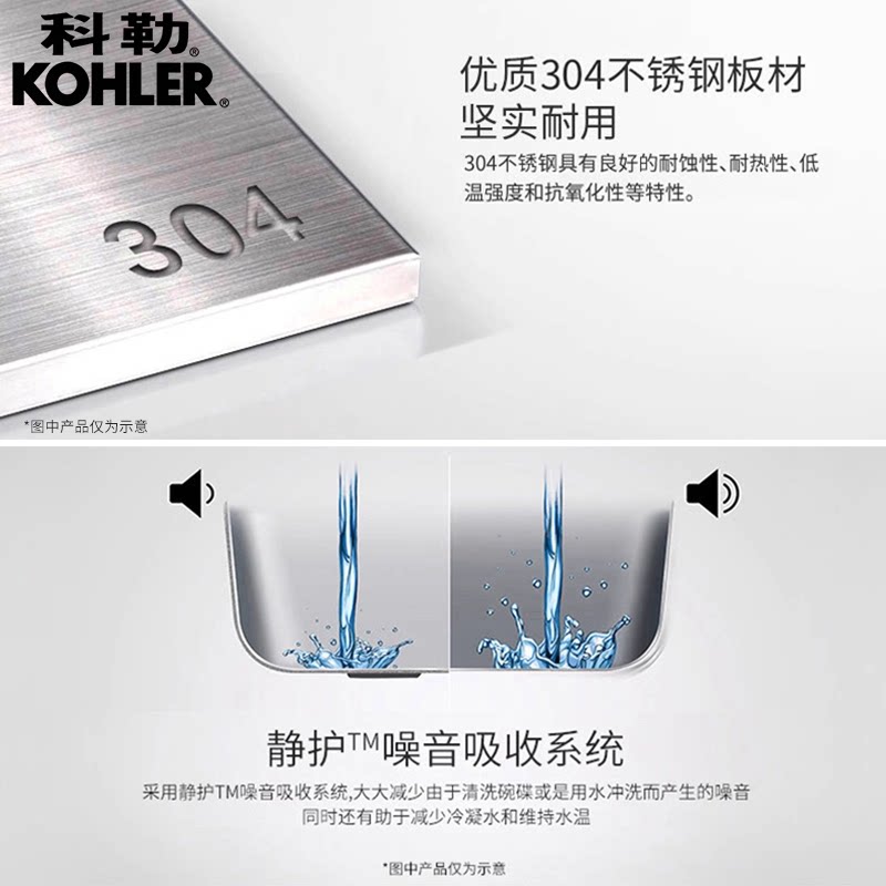 科勒水槽套装大单槽25616采用优质304不锈钢材质,坚固耐用,抗腐蚀、耐高温,确保长久使用不生锈。加厚面板设计,有效降低噪音,提升使用体验。手工精磨工艺打造,表面光滑细腻,边缘圆润安全,易于清洁保养。大单槽设计提供宽敞洗涤空间,满足洗锅、洗碗、备菜等多种厨房需求。搭配高效沥水篮和多功能水龙头,使用更便捷。整体简约时尚,适配多种厨房风格,是家庭厨房的理想之选。科勒品牌保障,品质可靠,为您带来舒适、高效的厨房洗涤体验。
