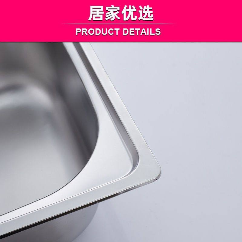 这款304不锈钢单槽洗菜盆,采用优质304不锈钢材质,坚固耐用、抗腐蚀、易清洁,有效防止生锈和细菌滋生。一体成型设计,边缘光滑无毛刺,搭配大空间设计,可轻松容纳锅碗瓢盆,满足日常洗菜、洗碗、沥水等多种需求。适配多种厨房装修风格,安装便捷,支持台上、台下或平嵌式安装。提供多种尺寸选择,从小号到加大号,满足不同厨房空间需求。底部配有消音垫和防冷凝涂层,有效降低水流噪音,延长使用寿命。是家庭厨房实用又美观的理想选择,提升烹饪与清洁效率。