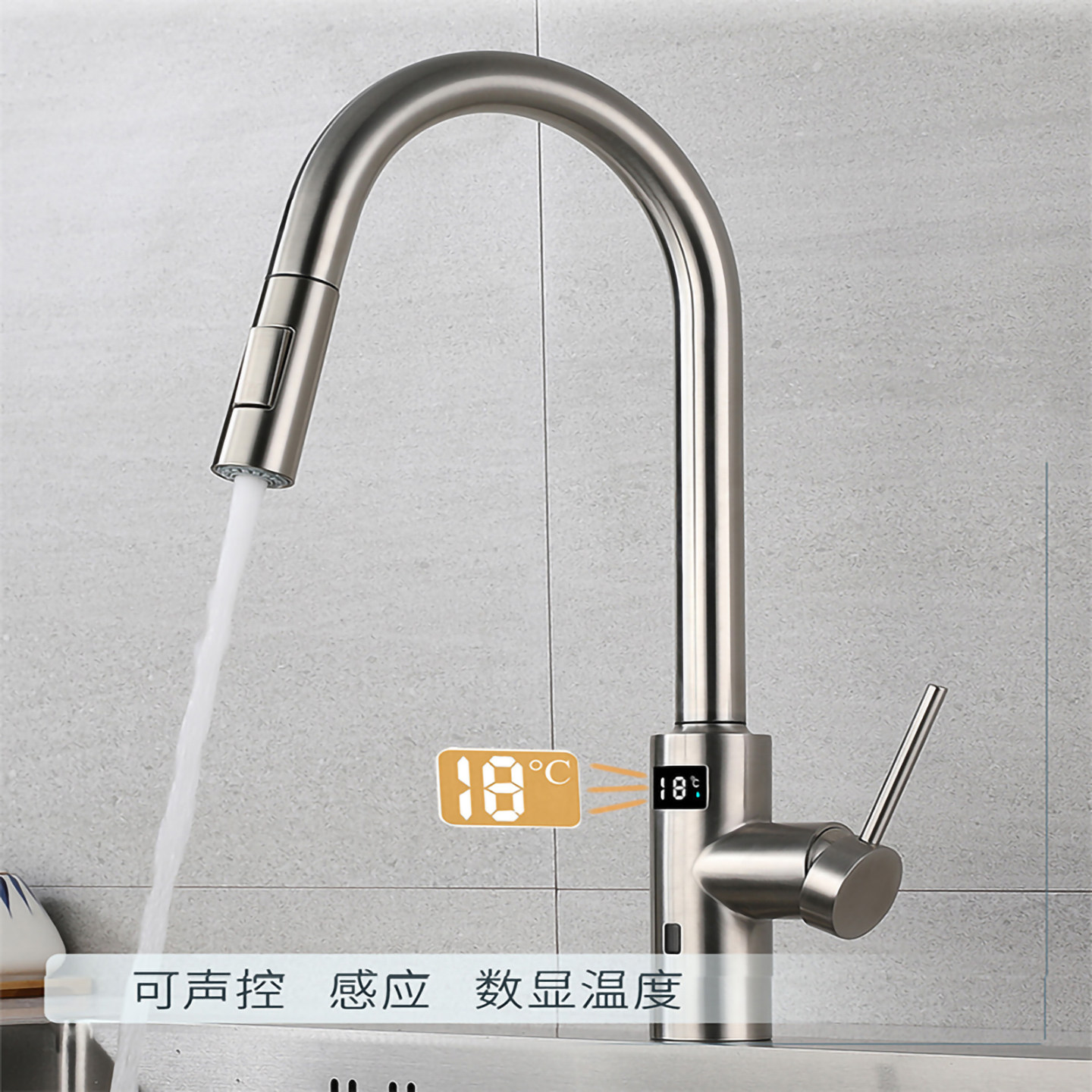 淘宝不锈钢智能声控温度数显红外感应厨房水槽冷热洗菜盆抽拉水龙头