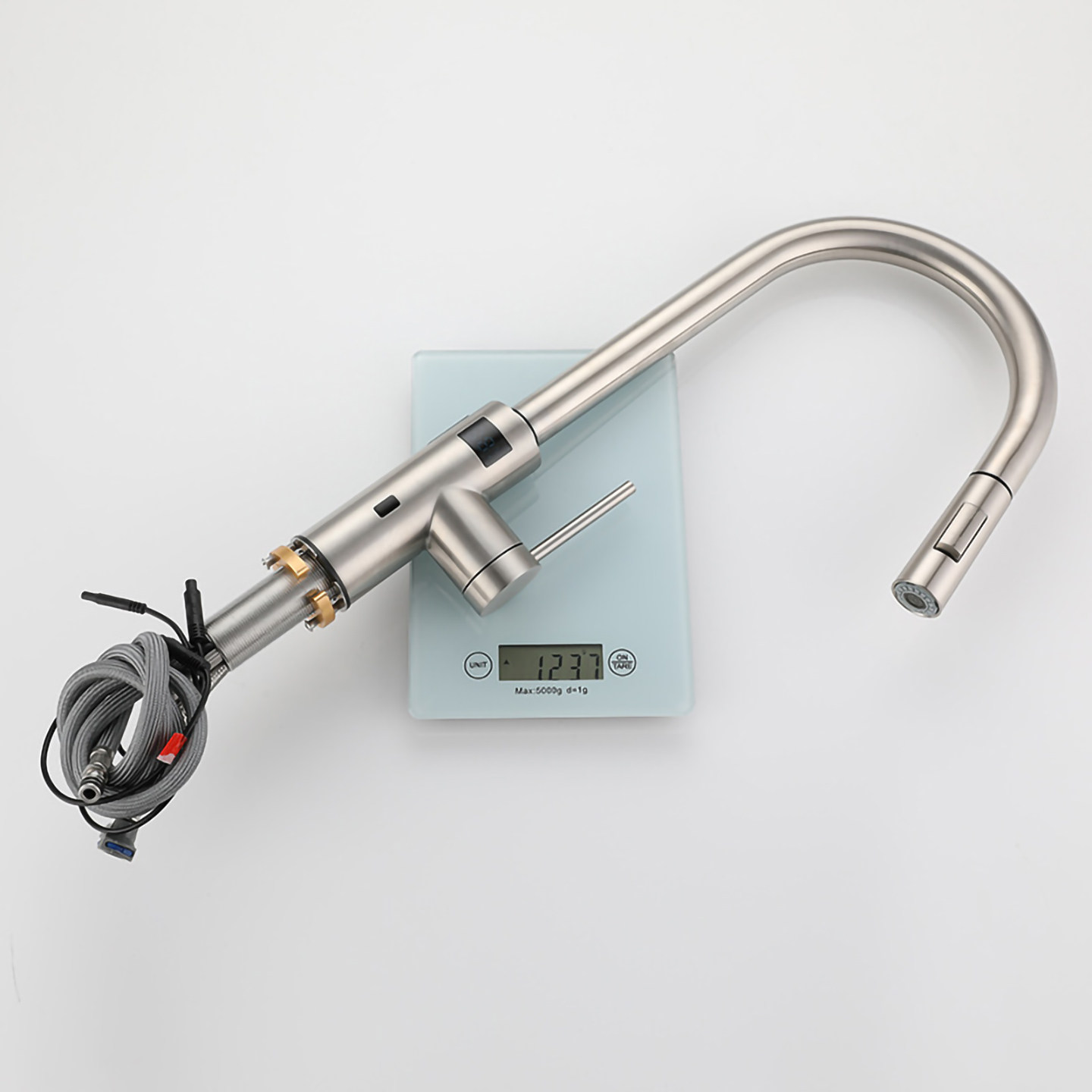 这款不锈钢智能声控温度数显红外感应厨房水槽冷热洗菜盆抽拉水龙头,融合现代科技与实用设计,提升厨房使用体验。采用优质304不锈钢材质,耐腐蚀、抗生锈,坚固耐用。配备红外感应出水功能,伸手即出、离手即停,节水又卫生。支持语音控制,轻松调节冷热水,操作便捷。LED数显屏实时显示水温,避免烫伤风险。抽拉式设计搭配360°旋转喷头,清洗水槽无死角,灵活应对各种清洁需求。冷热双控、一键切换,适用于洗菜、洗碗等多种场景,是智能厨房的理想之选。