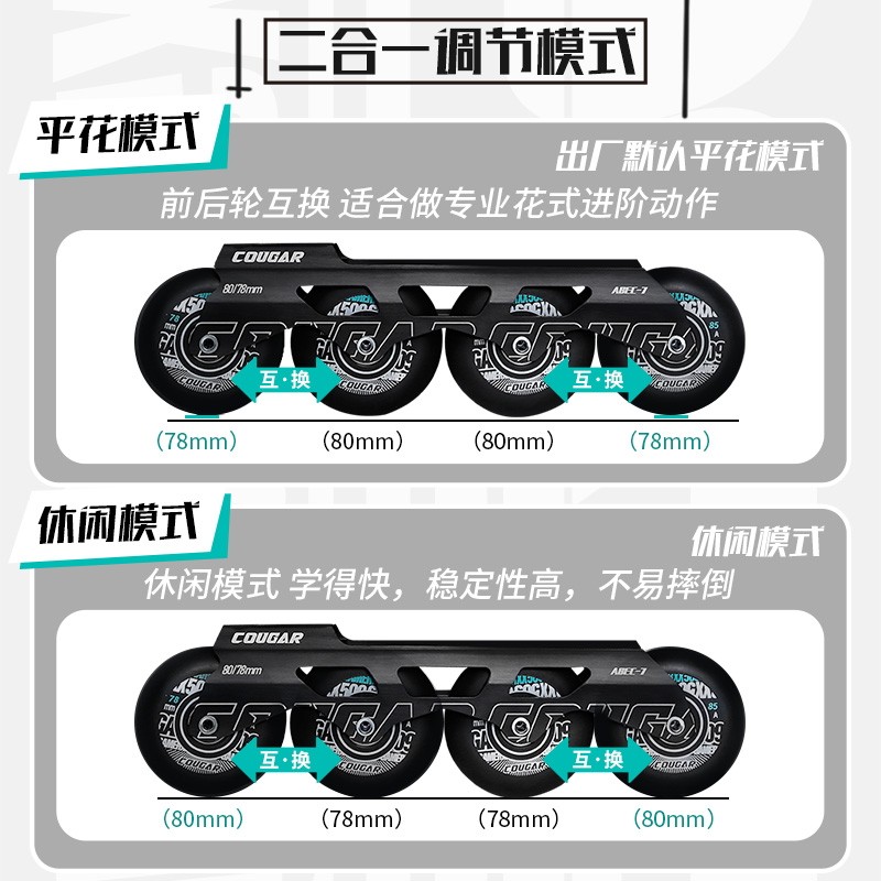 天猫美洲狮成人轮滑鞋平花 溜冰鞋男女大学生专业直排旱冰鞋单排