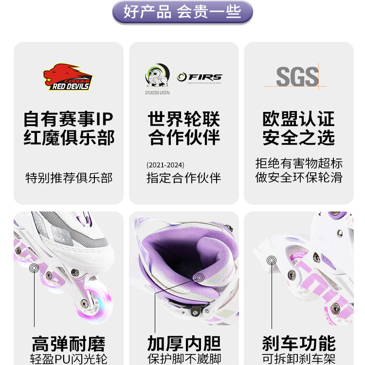 天儿童溜冰鞋女童轮滑鞋女孩3岁6到12岁初学者专业滑轮可调节大小