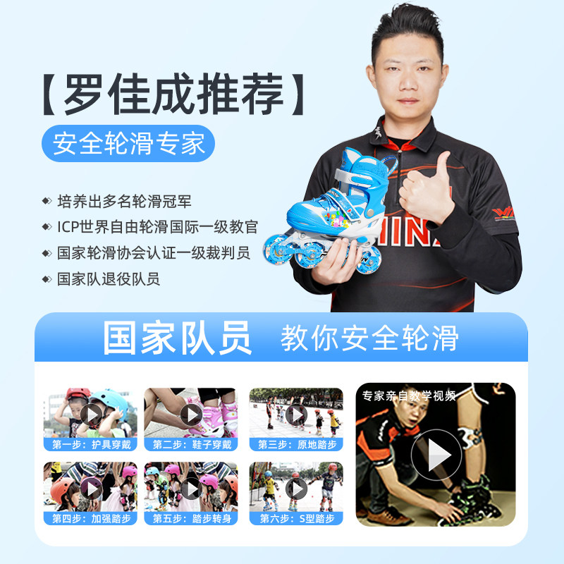 溜冰鞋儿童全套装初学者旱冰滑冰鞋男女童孩正品专业轮滑鞋可调节