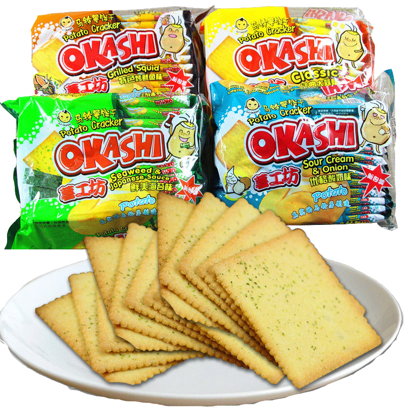 天猫okashi味觉小子薯工坊马铃薯土豆饼干零食海苔蒜香味薄脆饼干薯片