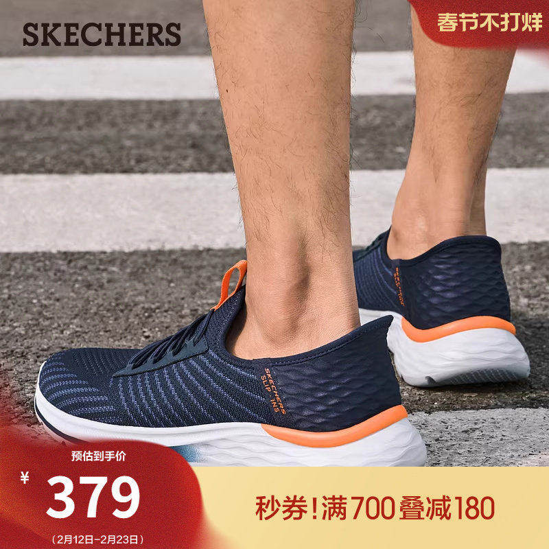 天猫斯凯奇闪穿鞋|春季新款男脚宽脚胖厚底休闲运动鞋一脚蹬跑步鞋